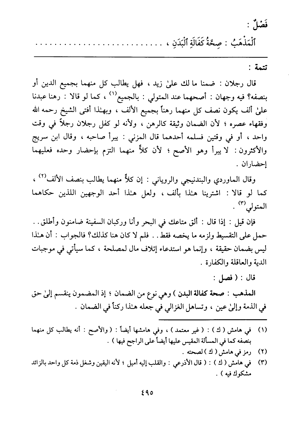 المذهب: صحة كفالة البدن) وهي نوع من الضمان؛ إذ المضمون ينقسم إلى حق في الذمة وإلى عين، وتساهل الغزالي في جعله هذا ركنًا في الضمان.