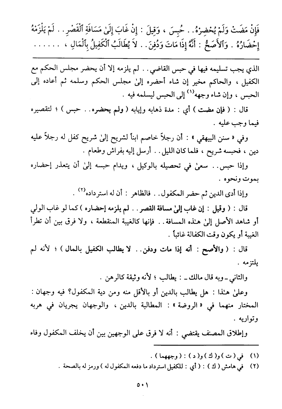 قال: (وقيل: إن غاب إلى مسافة القصر .. لم يلزمه إحضاره) كما لو غاب الولي أو شاهد الأصل إلى هذه المسافة .. فإنها كالغيبة المنقطعة، ولا فرق بين أن تطرأ الغيبة أو يكون وقت الكفالة غائبًا.