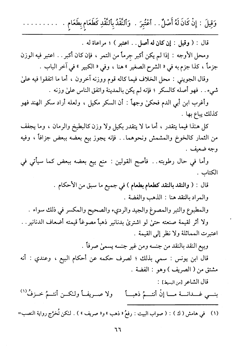 وَقِيلَ: إِنْ كَانَ لَهُ أَصْلٌ .. اعْتُبِرَ. وَالنَّقْدُ بِالنَّقْدِ كَطَعَامٍ بِطَعَامٍ