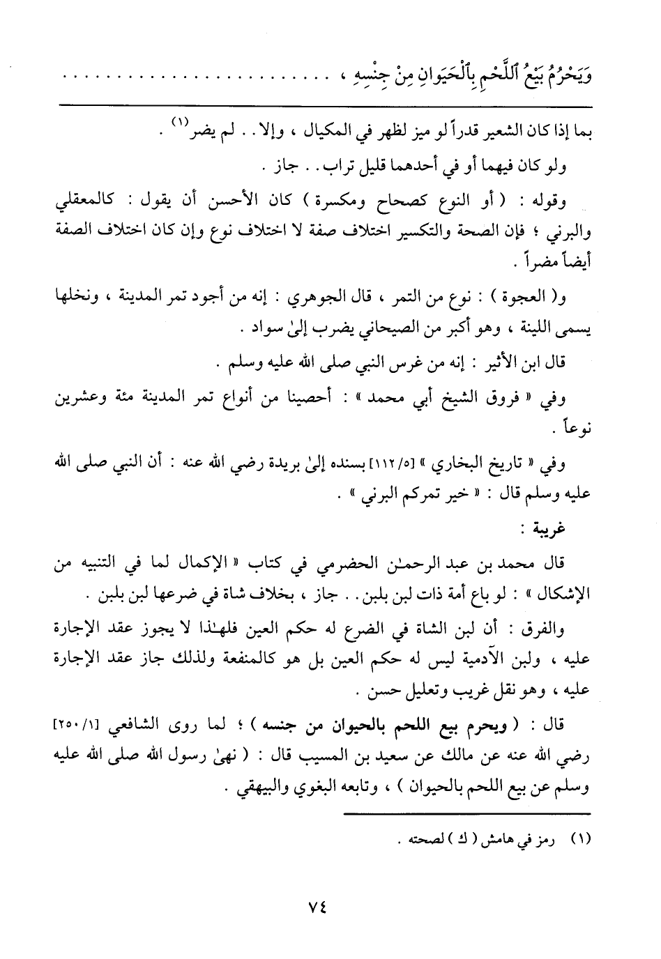 وَيَحْرُمُ بَيْعُ اللَّحْمِ بِالْحَيَوانِ مِنْ جِنْسِهِ،