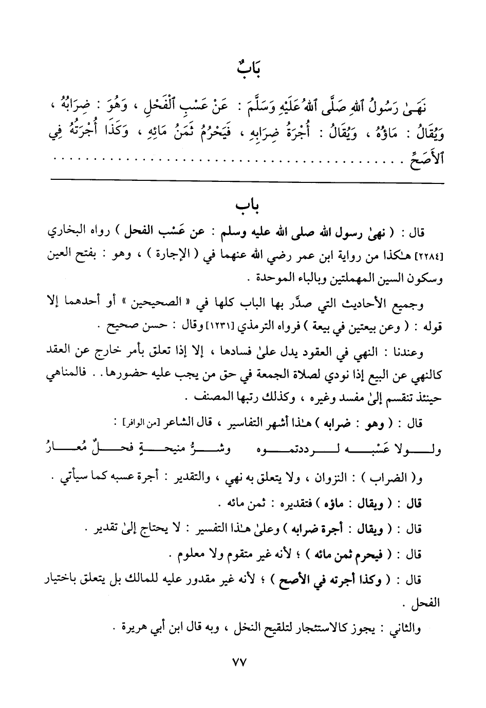 قال: (نهى رسول الله صلى الله عليه وسلم: عن عَسْب الفحل) رواه البخاري [2284] هكذا من رواية ابن عمر رضي الله عنهما في (الإجارة)، وهو: بفتح العين وسكون السين المهملتين وبالباء الموحدة.