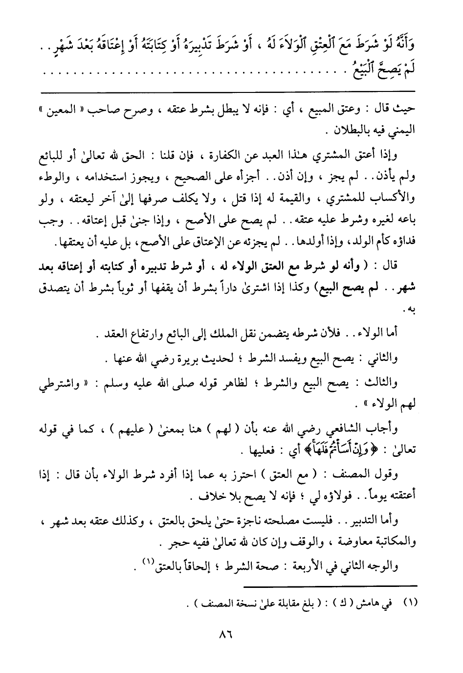 حيث قال: وعتق المبيع، أي: فإنه لا يبطل بشرط عتقه، وصرح صاحب (المعين) اليمني فيه بالبطلان.