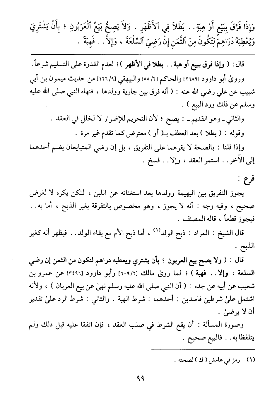 وروى أبو داوود [2689] والحاكم [2/ 55] والبيهقي [9/ 126] من حديث ميمون بن أبي شبيب عن علي رضي الله عنه: (أنه فرق بين جارية وولدها، فنهاه النبي صلى الله عليه وسلم عن ذلك ورد البيع).