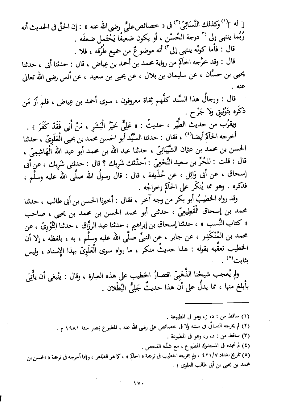 لَهُ وَكَذَلِكَ النَّسَائِيّ فِي خَصَائِص عَليّ رَضِي الله عَنهُ إِن الْحق فِي الحَدِيث أَنه رُبمَا يَنْتَهِي إِلَى دَرَجَة الْحسن أَو يكون ضَعِيفا يحْتَمل ضعفه