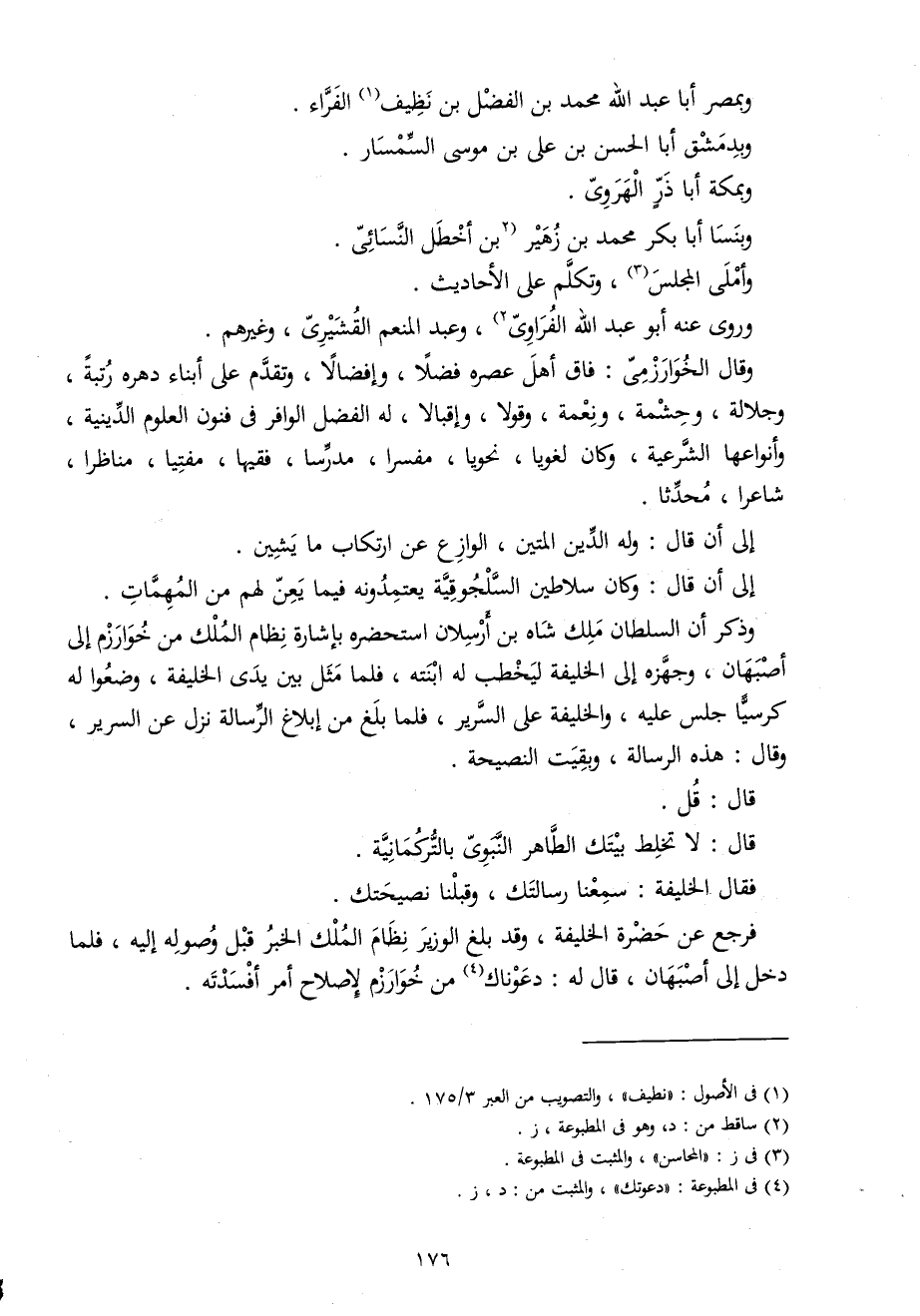 إِلَى أَن قَالَ وَكَانَ سلاطين السلجوقية يعتمدونه فِيمَا يعن لَهُم من الْمُهِمَّات