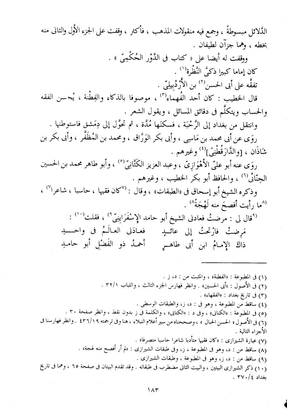 وَذكره الشَّيْخ أَبُو إِسْحَاق فِي الطَّبَقَات وَقَالَ كَانَ فَقِيها حاسبا شَاعِرًا مَا رَأَيْت أفْصح مِنْهُ لهجة
