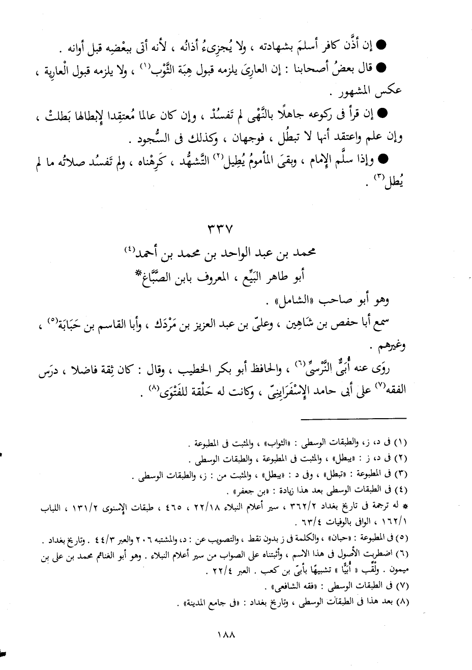 337 - مُحَمَّد بن عبد الْوَاحِد بن مُحَمَّد بن أَحْمد أَبُو طَاهِر البيع الْمَعْرُوف بِابْن الصّباغ