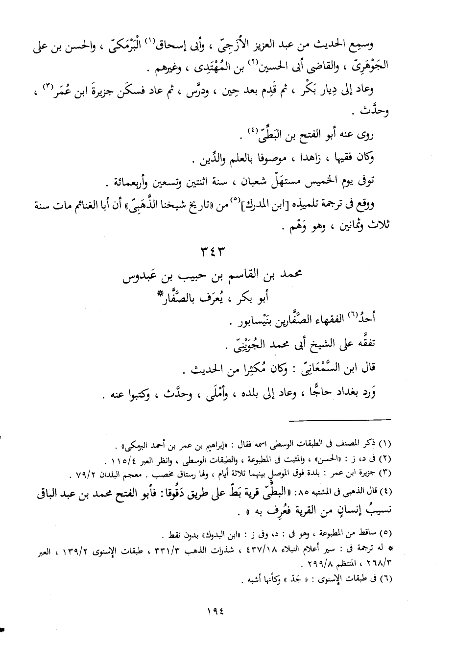 343 - مُحَمَّد بن الْقَاسِم بن حبيب بن عَبدُوس أَبُو بكر يعرف بالصفار