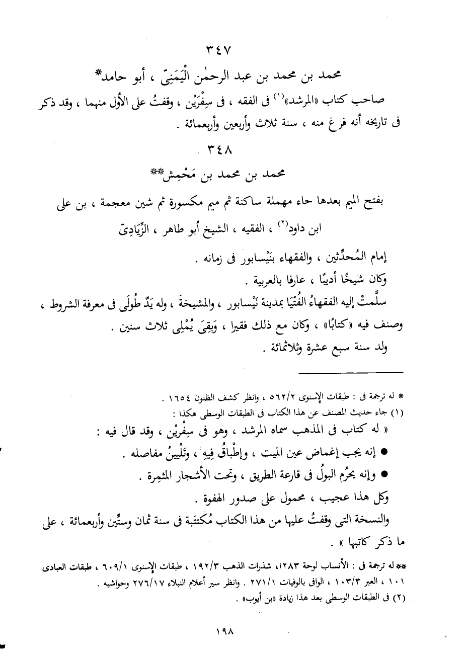 صَاحب كتاب المرشد فِي الْفِقْه فِي سفرين وقفت على الأول مِنْهُمَا وَقد ذكر فِي تَارِيخه أَنه فرغ مِنْهُ سنة ثَلَاث وَأَرْبَعين وَأَرْبَعمِائَة
