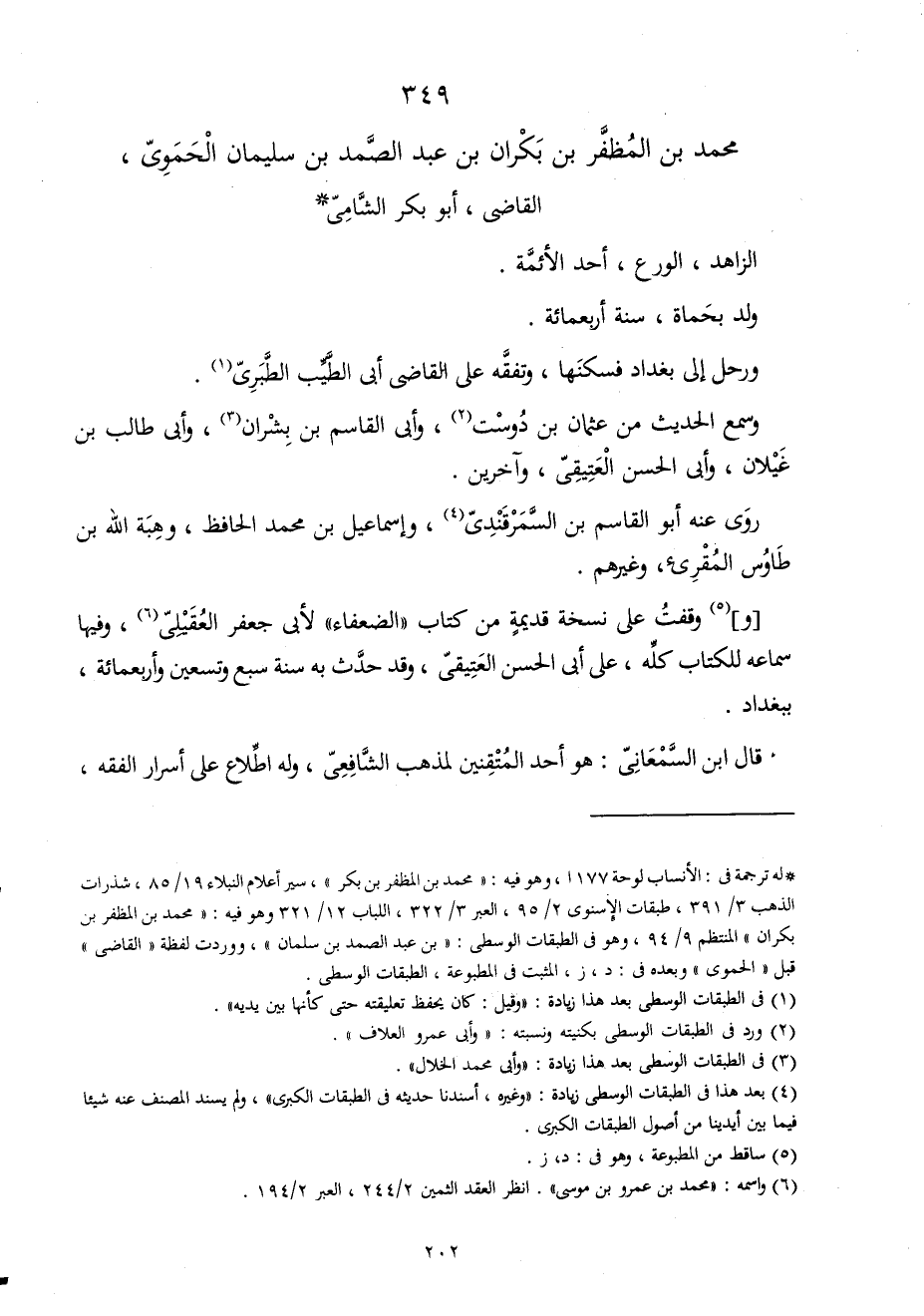 349 - مُحَمَّد بن المظفر بن بكران بن عبد الصَّمد بن سُلَيْمَان الْحَمَوِيّ القَاضِي أَبُو بكر الشَّامي