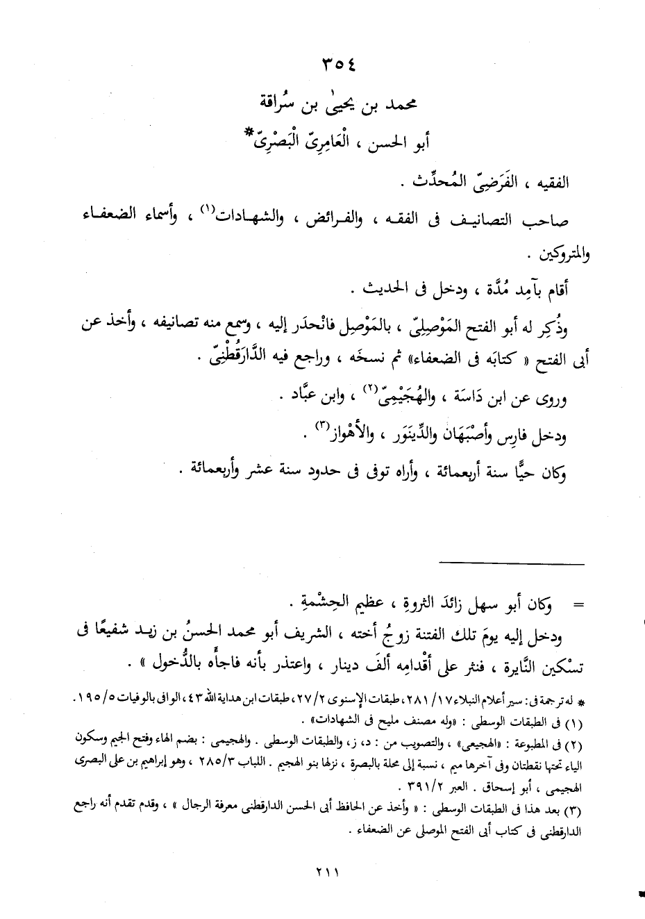 354 - مُحَمَّد بن يحيى بن سراقَة أَبُو الْحسن العامري الْبَصْرِيّ