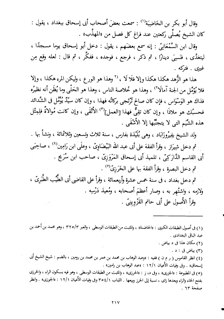 وَقَالَ أَبُو بكر بن الخاضبة سَمِعت بعض أَصْحَاب أبي إِسْحَاق بِبَغْدَاد يَقُول كَانَ الشَّيْخ يُصَلِّي رَكْعَتَيْنِ عِنْد فرَاغ كل فصل من الْمُهَذّب
