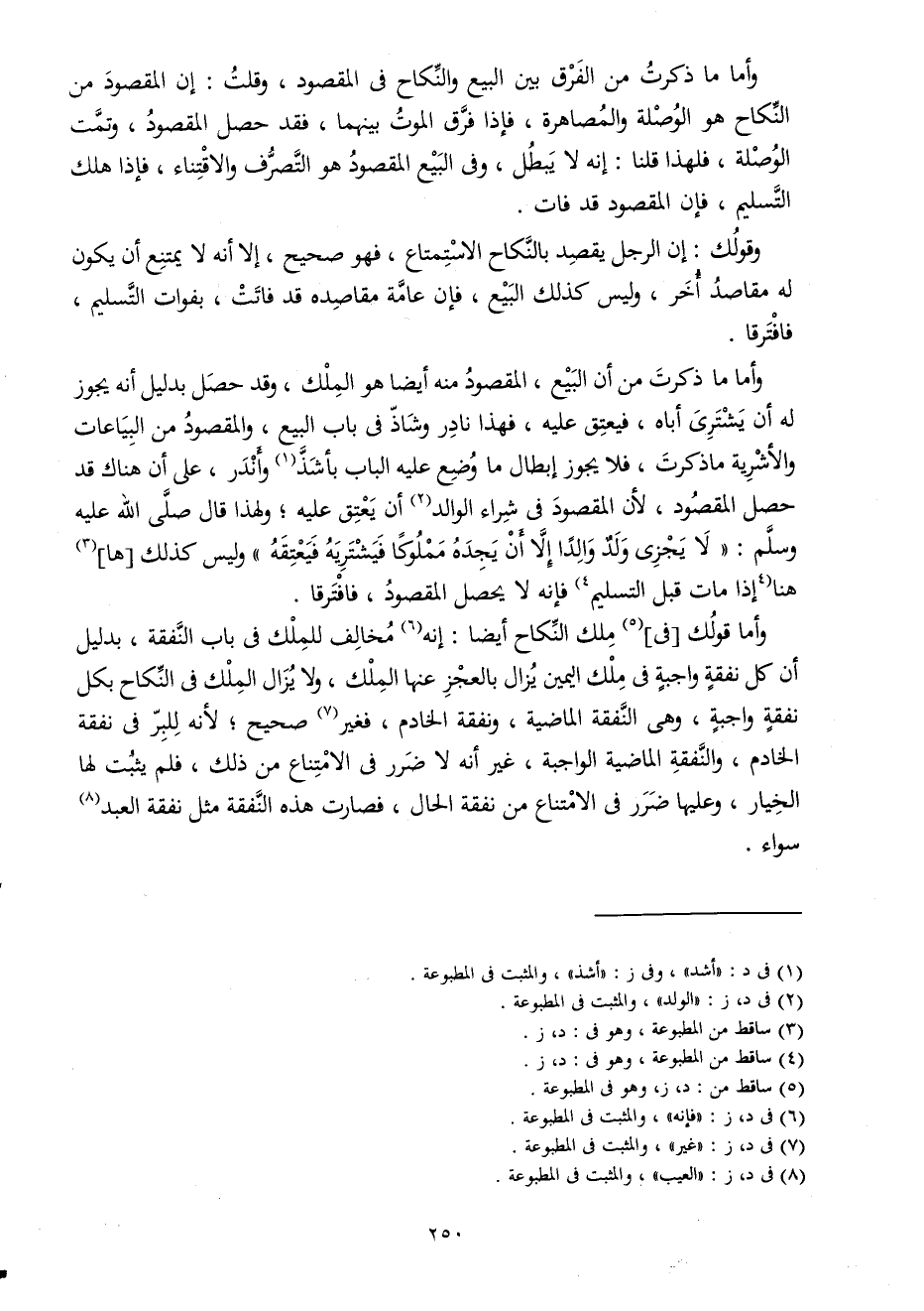 وقولك إِن الرجل يقْصد بِالنِّكَاحِ الِاسْتِمْتَاع فَهُوَ صَحِيح إِلَّا أَنه لَا يمْتَنع أَن يكون لَهُ مَقَاصِد أخر وَلَيْسَ كَذَلِك البيع فَإِن عَامَّة مقاصده قد فَاتَت بِفَوَات التَّسْلِيم فَافْتَرقَا