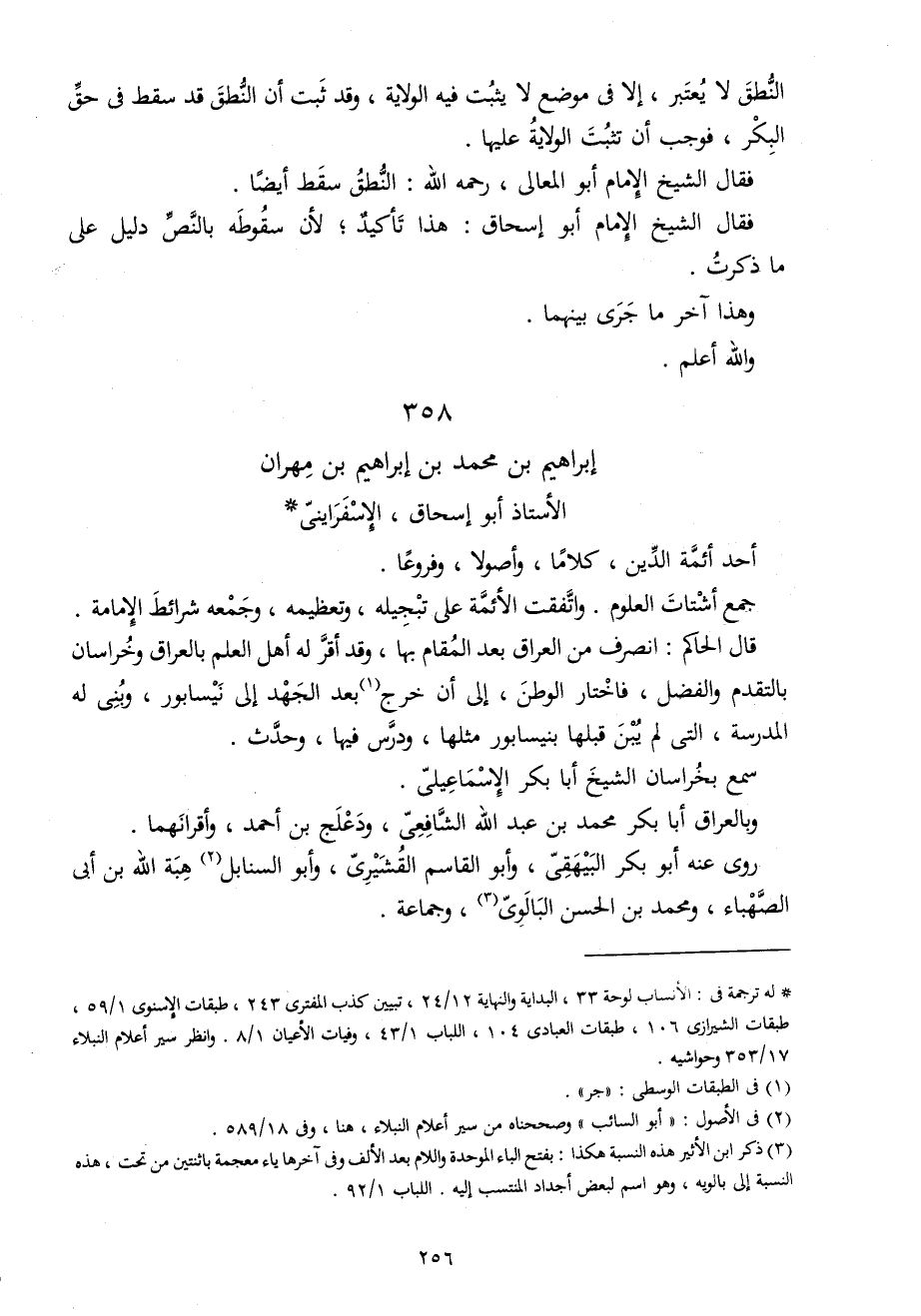 358 - إِبْرَاهِيم بن مُحَمَّد بن إِبْرَاهِيم بن مهْرَان الْأُسْتَاذ أَبُو إِسْحَاق الإسفرايني