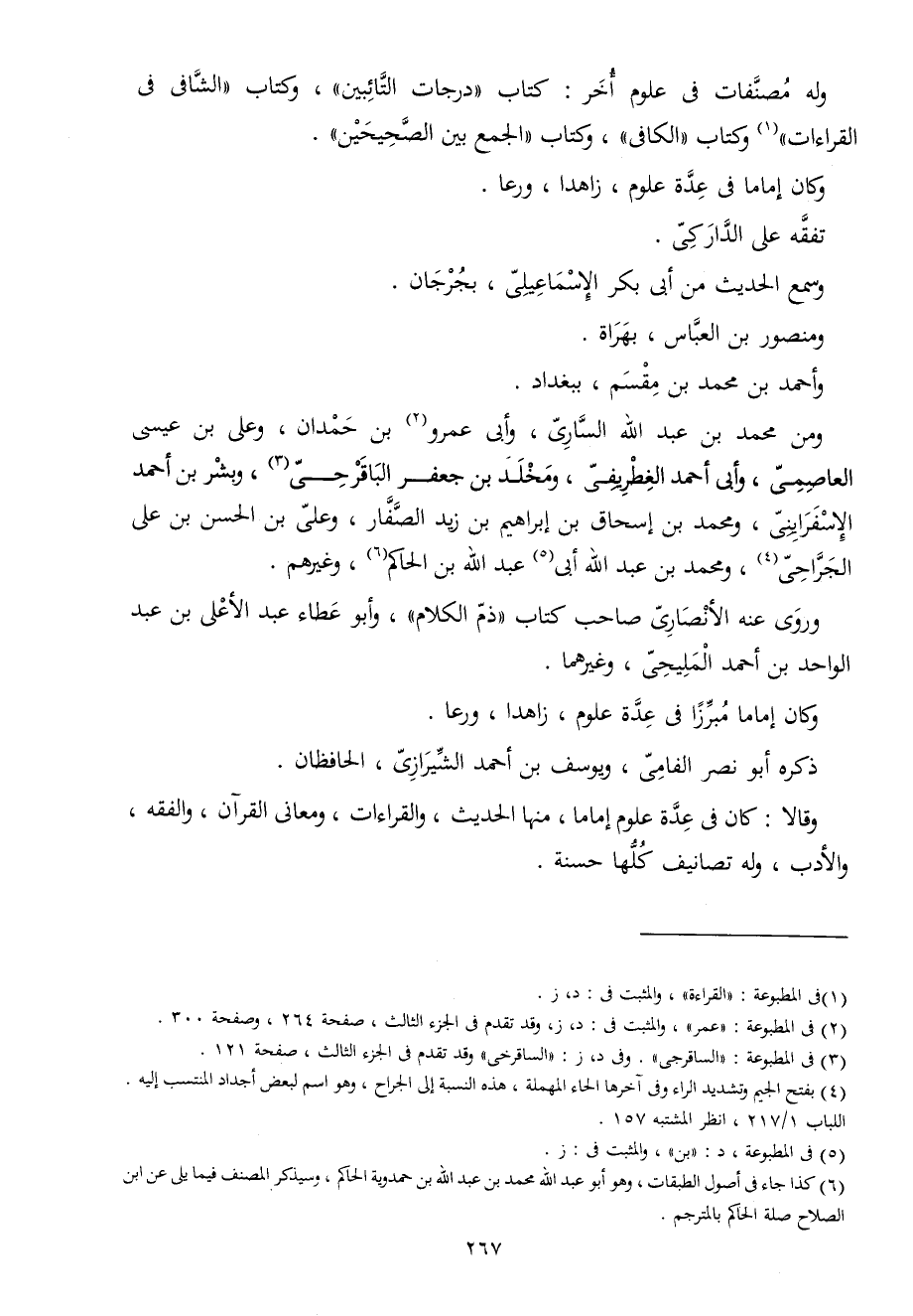 وَله مصنفات فِي عُلُوم أخر كتاب دَرَجَات التائبين وَكتاب الشافي فِي الْقرَاءَات وَكتاب الْكَافِي وَكتاب الْجمع بَين الصَّحِيحَيْنِ