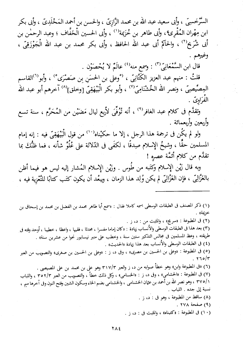وزين الْإِسْلَام الْمشَار إِلَيْهِ لَيْسَ هُوَ فِيمَا أَظن بالغزالي فَإِن الْغَزالِيّ لم يكن ولد هَذَا الزَّمَان وَيبعد أَن يكون كتب كتابا للتعزية فِيهِ