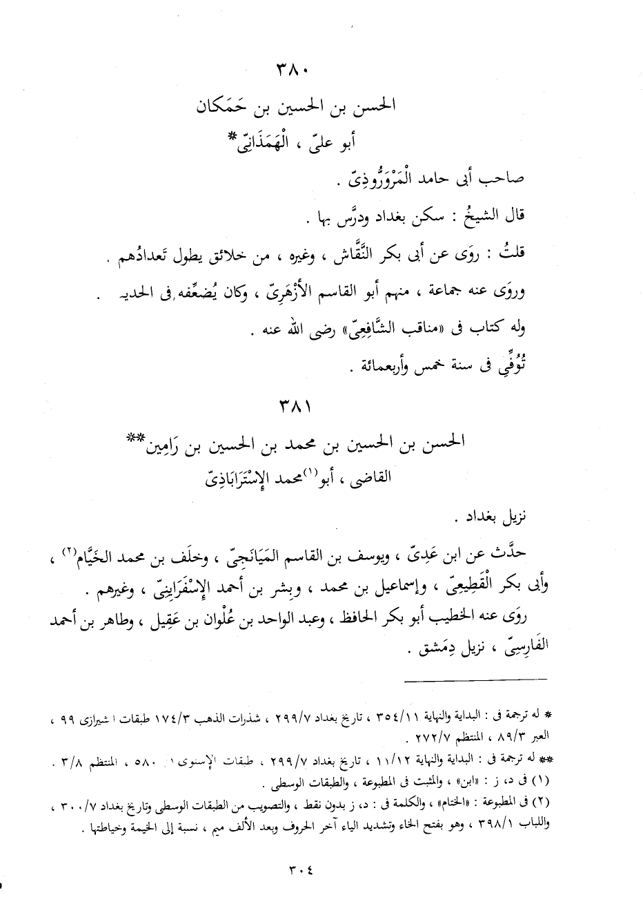 380 - الْحسن بن الْحُسَيْن بن حمكان أَبُو عَليّ الهمذاني