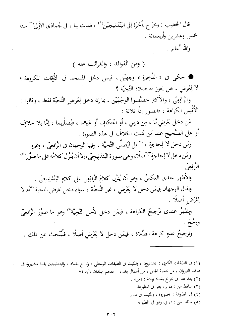 وترجيح عدم كَرَاهَة الصَّلَاة فِيمَن دخل لَا لغَرَض أصلا فليبحث عَن ذَلِك