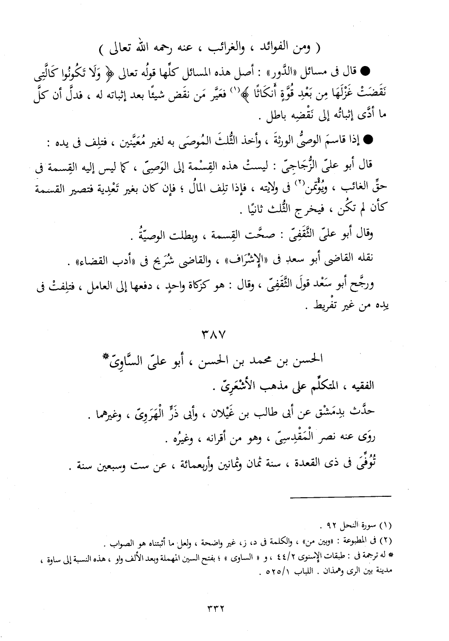 387 - الْحسن بن مُحَمَّد بن الْحسن أَبُو عَليّ الساوي