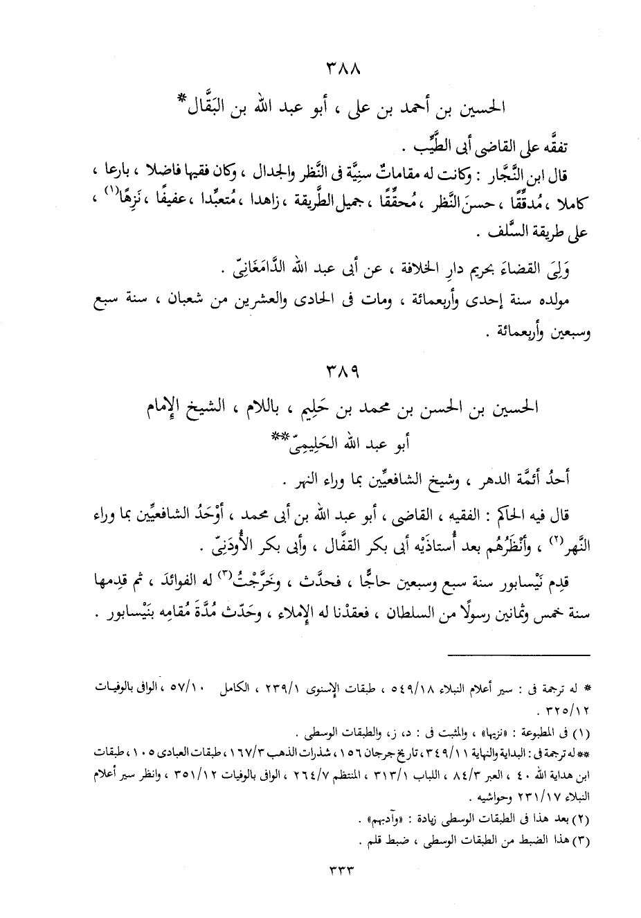 389 - الْحُسَيْن بن الْحسن بن مُحَمَّد بن حَلِيم بِاللَّامِ الشَّيْخ الإِمَام أَبُو عبد الله الْحَلِيمِيّ