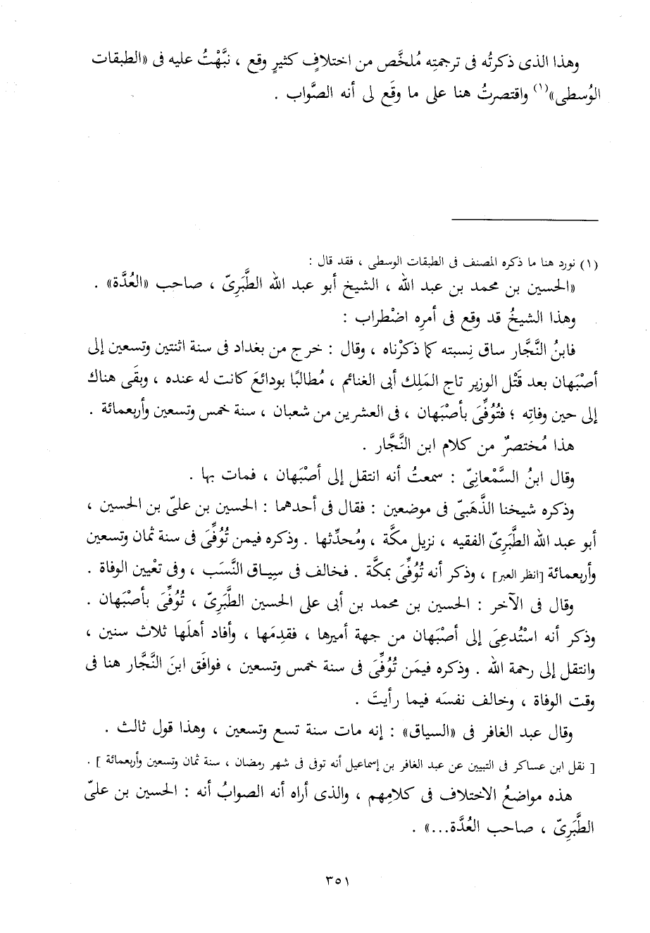وَهَذَا الَّذِي ذكرته فِي تَرْجَمته ملخص من اخْتِلَاف كثير وَقع نبهت عَلَيْهِ فِي الطَّبَقَات الْوُسْطَى واقتصرت هُنَا على مَا وَقع لي أَنه الصَّوَاب