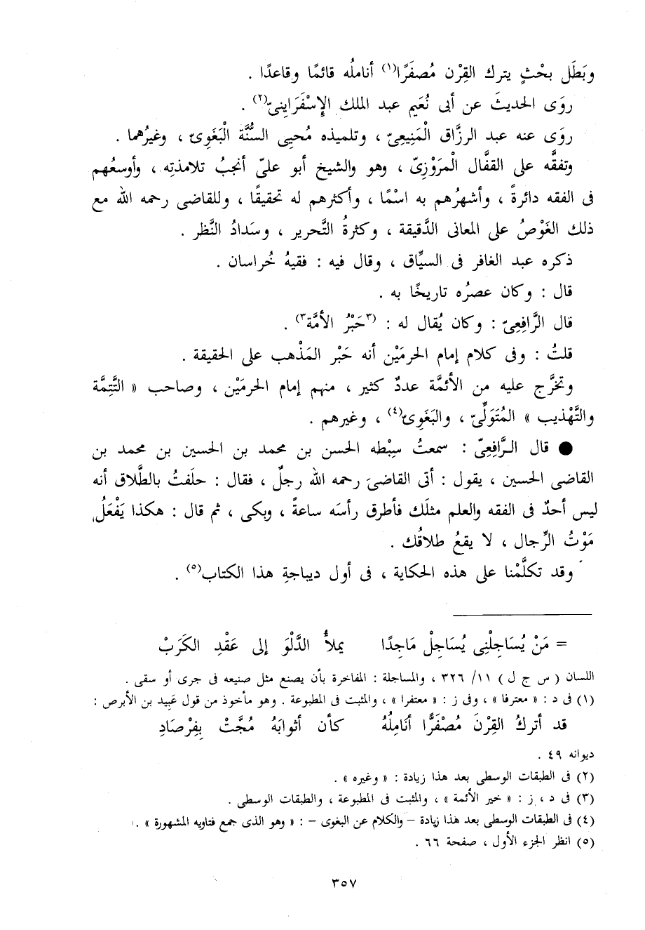 قلت وَفِي كَلَام إِمَام الْحَرَمَيْنِ أَنه حبر الْمَذْهَب على الْحَقِيقَة