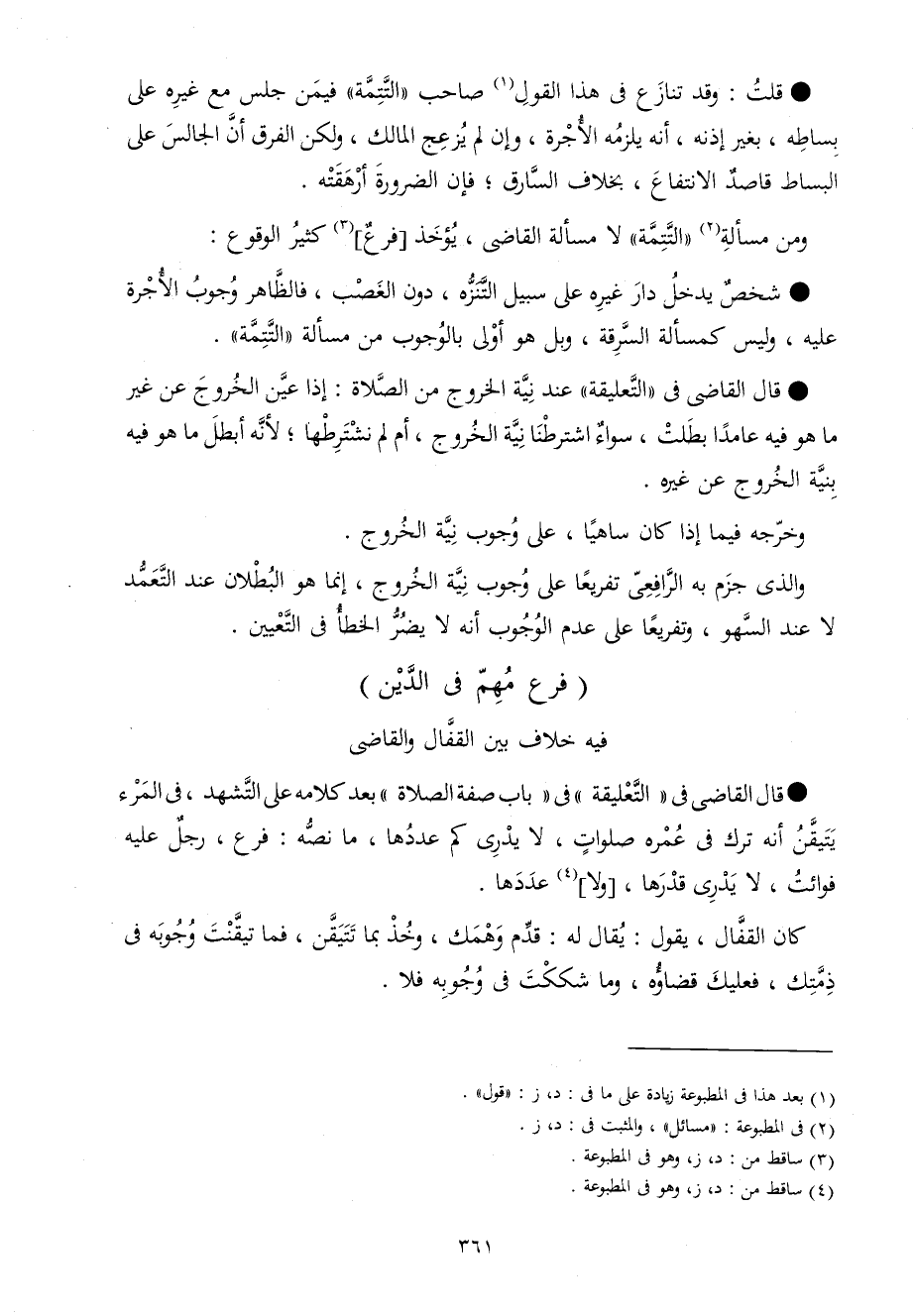 وَمن مَسْأَلَة التَّتِمَّة لَا مَسْأَلَة القَاضِي يُؤْخَذ فرع كثير الْوُقُوع