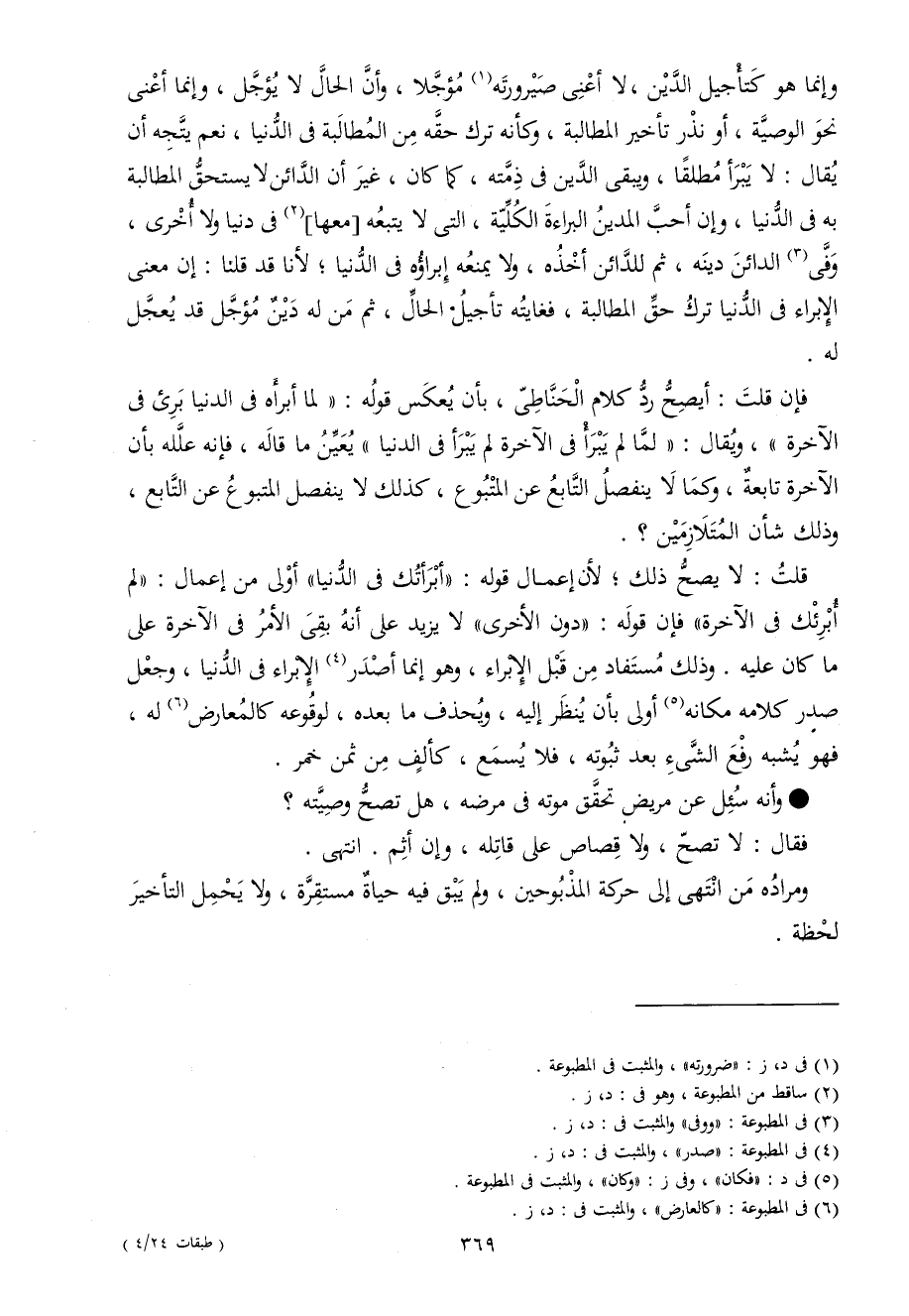 فَإِن قلت أيصح رد كَلَام الحناطي بِأَن يعكس قَوْله لما أَبرَأَهُ فِي الدُّنْيَا بَرِيء فِي الْآخِرَة وَيُقَال لما لم يبرأ فِي الْآخِرَة لم يبرأ فِي الدُّنْيَا يعين مَا قَالَه فَإِنَّهُ علله بِأَن الْآخِرَة تَابِعَة وكما لَا ينْفَصل التَّابِع عَن الْمَتْبُوع كَذَلِك لَا ينْفَصل الْمَتْبُوع عَن التَّابِع وَذَلِكَ شَأْن المتلازمين