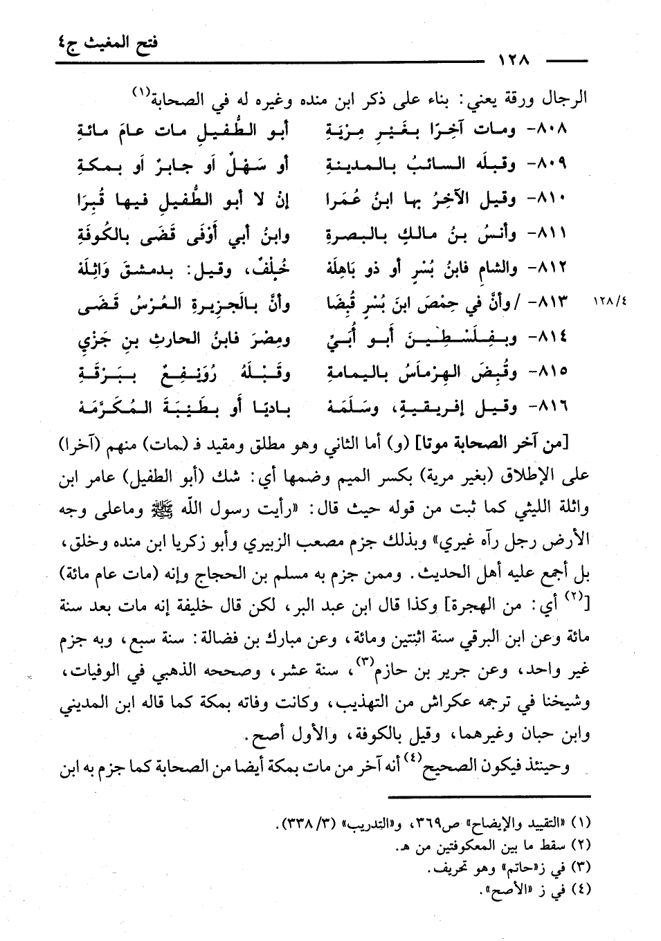 808 - وَمَاتَ آخِرًا بِغَيْرِ مِرْيَةِ ... أَبُو الطُّفَيْلِ مَاتَ عَامَ مِائَةِ