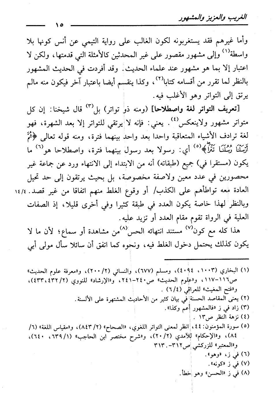 وَأَمَّا غَيْرُهُمْ فَقَدْ يَسْتَغْرِبُونَهُ ; لِكَوْنِ الْغَالِبِ عَلَى رِوَايَةِ التَّيْمِيِّ عَنْ أَنَسٍ كَوْنُهَا بِلَا وَاسِطَةٍ. وَإِلَى مَشْهُورٍ مَقْصُورٍ عَلَى غَيْرِ الْمُحَدِّثِينَ ; كَالْأَمْثِلَةِ الَّتِي قَدَّمْتُهَا، وَلَكِنْ لَا اعْتِبَارَ إِلَّا بِمَا هُوَ مَشْهُورٌ عِنْدَ عُلَمَاءِ الْحَدِيثِ.