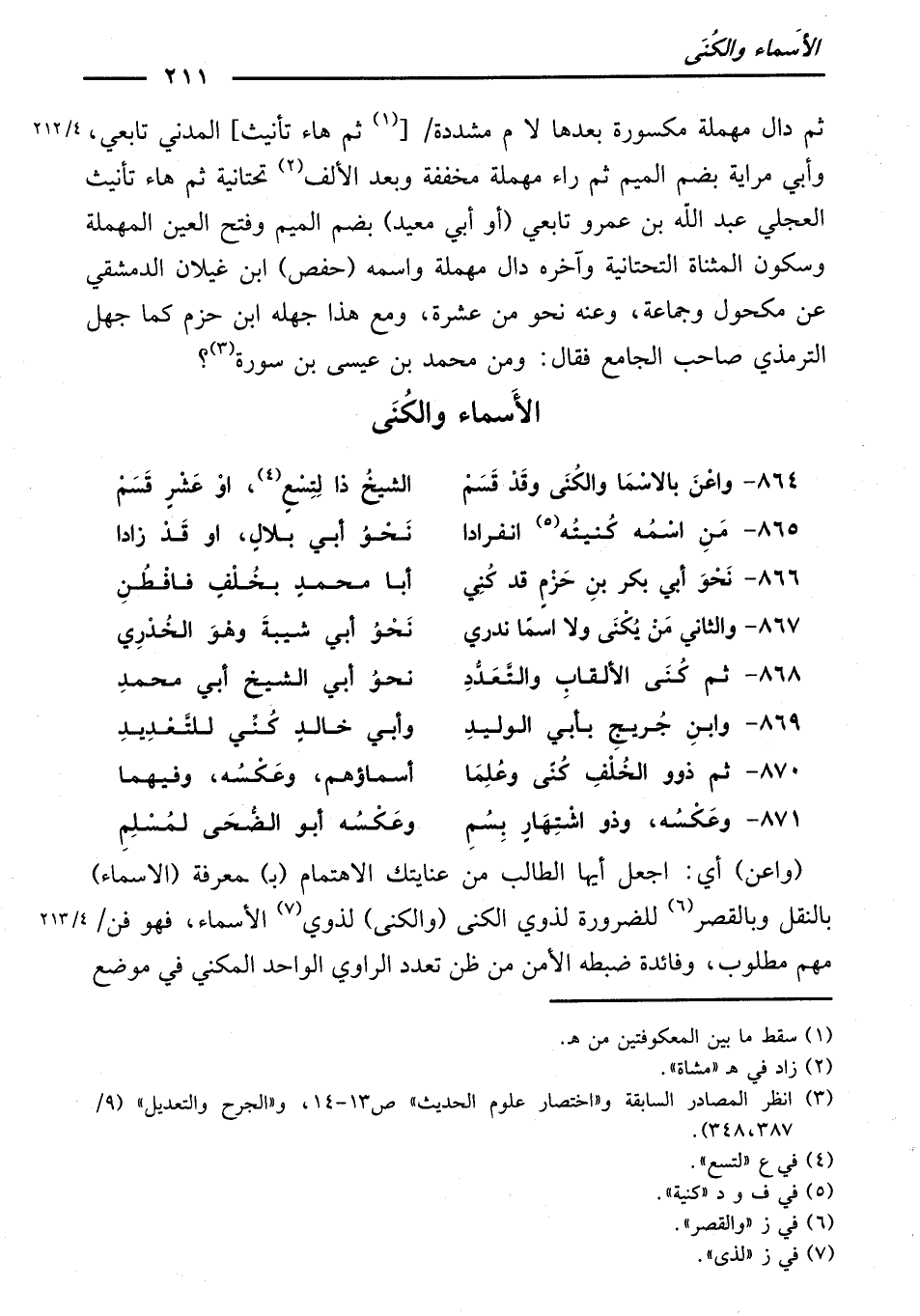 864 - وَاعْنَ بِالَاسْمَا وَالْكُنَى وَقَدْ قَسَمْ ... الشَّيْخُ ذَا لِتِسْعٍ أَوْ عَشْرٍ قَسَمْ