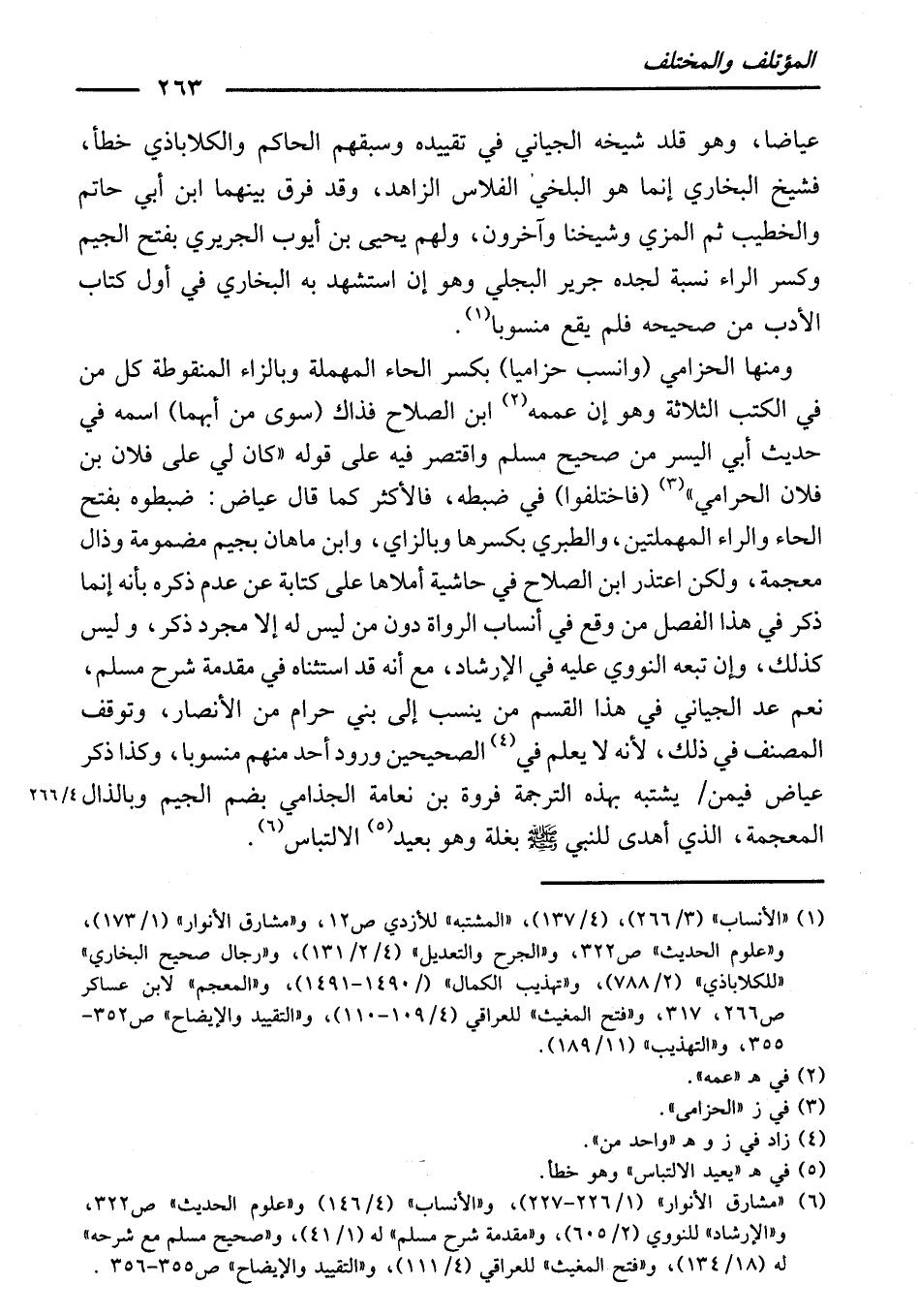 وَهُوَ قَلَّدَ شَيْخَهُ الْجَيَّانِيَّ فِي تَقْيِيدِهِ، وَسَبَقَهُمُ الْحَاكِمُ وَالْكِلَابَاذِيُّ خَطَأٌ، فَشَيْخُ الْبُخَارِيِّ إِنَّمَا هُوَ الْبَلْخِيُّ الْفَلَّاسُ الزَّاهِدُ، وَقَدْ فَرَّقَ بَيْنَهُمَا ابْنُ أَبِي حَاتِمٍ وَالْخَطِيبُ ثُمَّ الْمِزِّيُّ وَشَيْخُنَا وَآخَرُونَ، وَلَهُمْ يَحْيَى بْنُ أَيُّوبَ الْجَرِيرِيُّ بِفَتْحِ الْجِيمِ وَكَسْرِ الرَّاءِ نِسْبَةً لِجَدِّهِ جَرِيرٍ الْبَجَلِيِّ، وَهُوَ إِنِ اسْتَشْهَدَ بِهِ الْبُخَارِيُّ فِي أَوَّلِ كِتَابِ الْأَدَبِ مِنْ صَحِيحِهِ، فَلَمْ يَقَعْ مَنْسُوبًا.