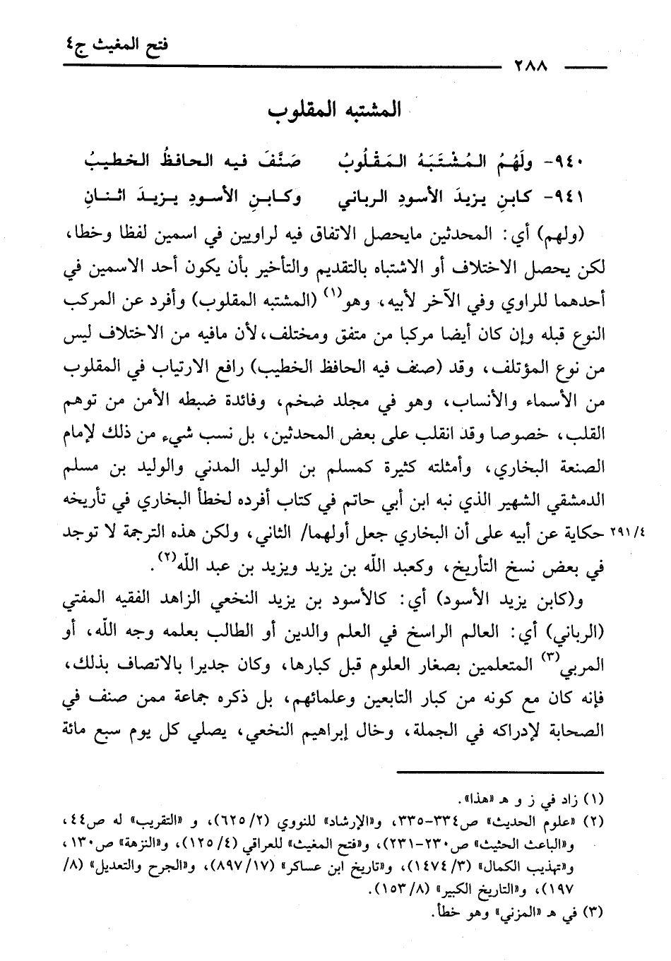 940 - وَلَهُمُ الْمُشْتَبِهُ الْمَقْلُوبُ ... صَنَّفَ فِيهِ الْحَافِظُ الْخَطِيبُ
