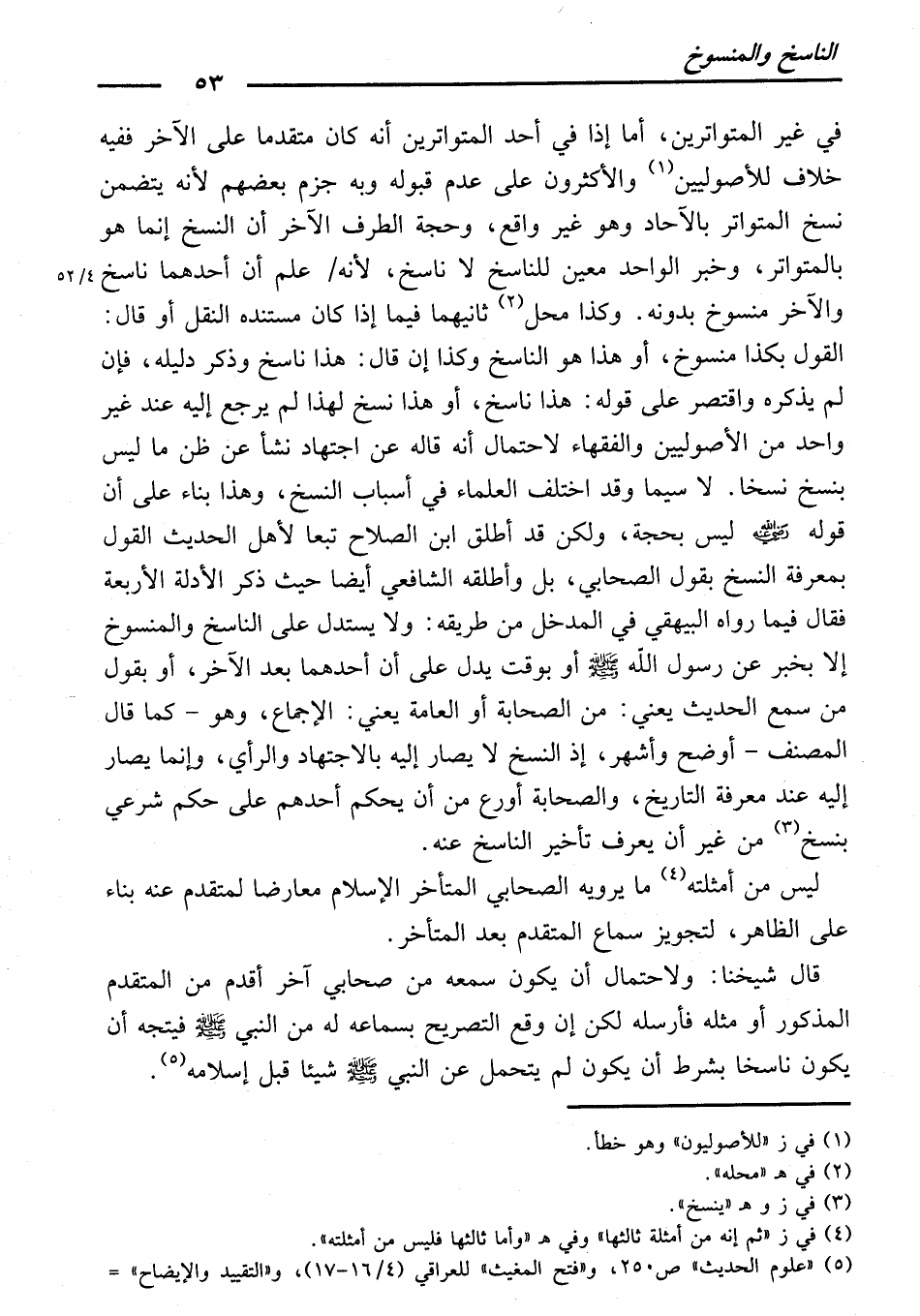 قَالَ شَيْخُنَا: وَلِاحْتِمَالِ أَنْ يَكُونَ سَمِعَهُ مِنْ صَحَابِيٍّ آخَرَ أَقْدَمَ مِنَ الْمُتَقَدِّمِ الْمَذْكُورِ أَوْ مِثْلِهِ فَأَرْسَلَهُ، لَكِنْ إِنْ وَقَعَ التَّصْرِيحُ بِسَمَاعِهِ لَهُ مِنَ النَّبِيِّ - صَلَّى اللَّهُ عَلَيْهِ وَسَلَّمَ -، فَيَتَّجِهُ أَنْ يَكُونَ نَاسِخًا بِشَرْطِ أَنْ يَكُونَ لَمْ يَتَحَمَّلْ عَنِ النَّبِيِّ - صَلَّى اللَّهُ عَلَيْهِ وَسَلَّمَ - شَيْئًا قَبْلَ إِسْلَامِهِ.