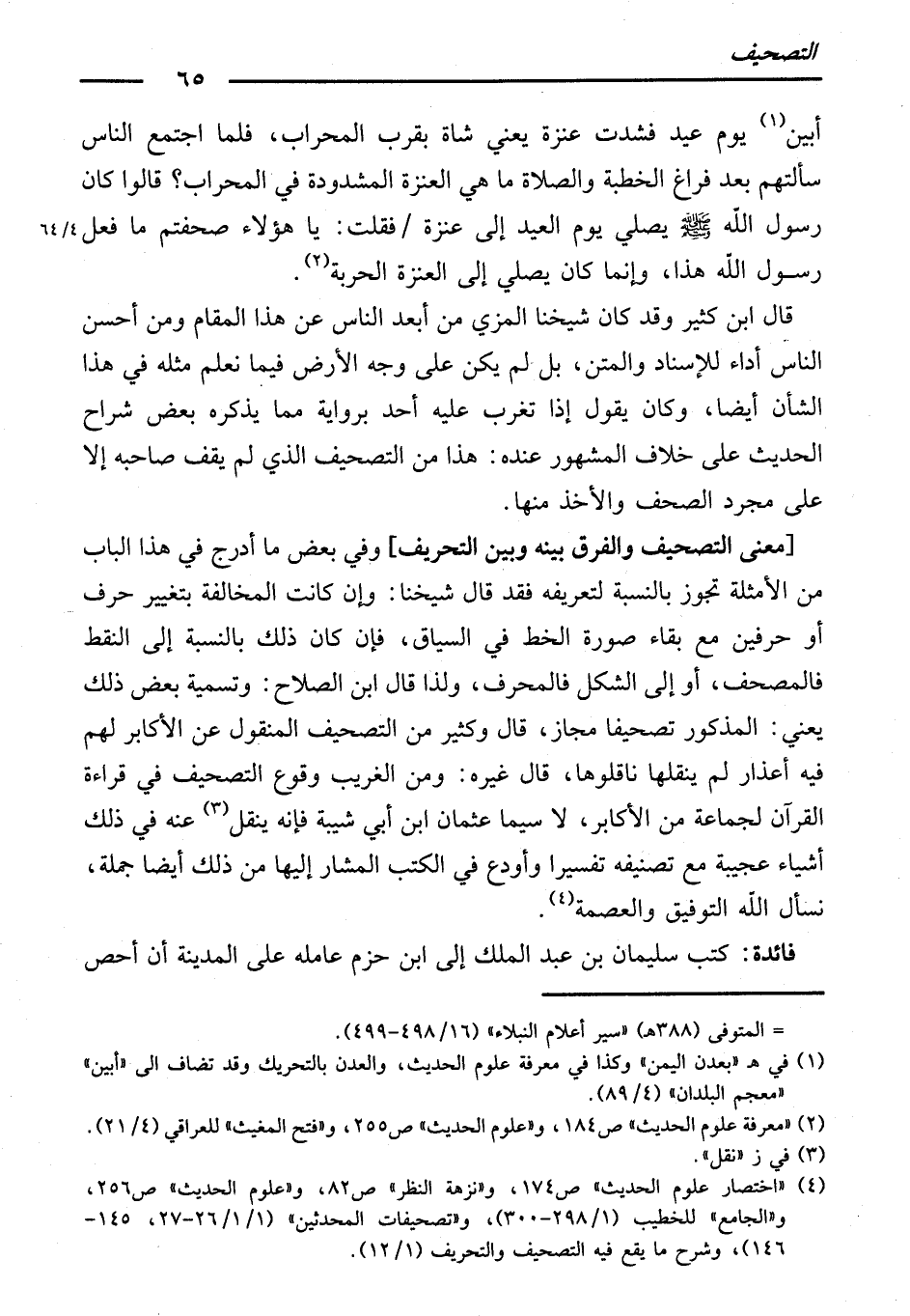 وَلِذَا قَالَ ابْنُ الصَّلَاحِ: وَتَسْمِيَةُ بَعْضِ ذَلِكَ - يَعْنِي الْمَذْكُورَ - تَصْحِيفًا مَجَازٌ. قَالَ: وَكَثِيرٌ مِنَ التَّصْحِيفِ الْمَنْقُولِ عَنِ الْأَكَابِرِ لَهُمْ فِيهِ أَعْذَارٌ لَمْ يَنْقُلْهَا نَاقِلُوهَا.