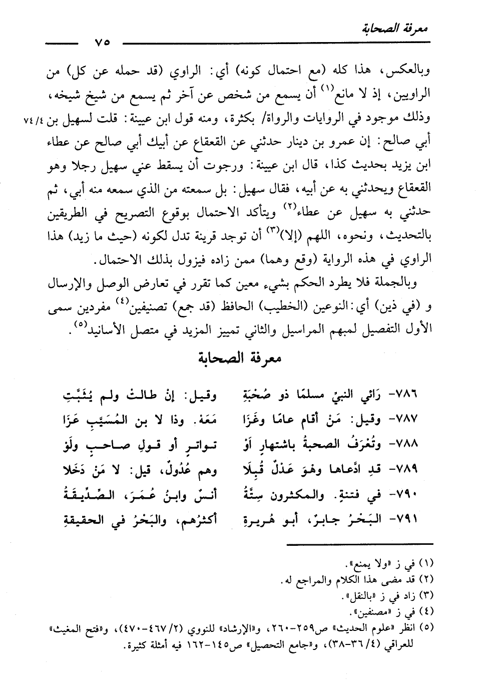 788 - وَتُعْرَفُ الصُّحْبَةُ بِاشْتِهَارٍ اوْ ... تَوَاتُرٍ أَوْ قَوْلِ صَاحِبٍ وَلَوْ