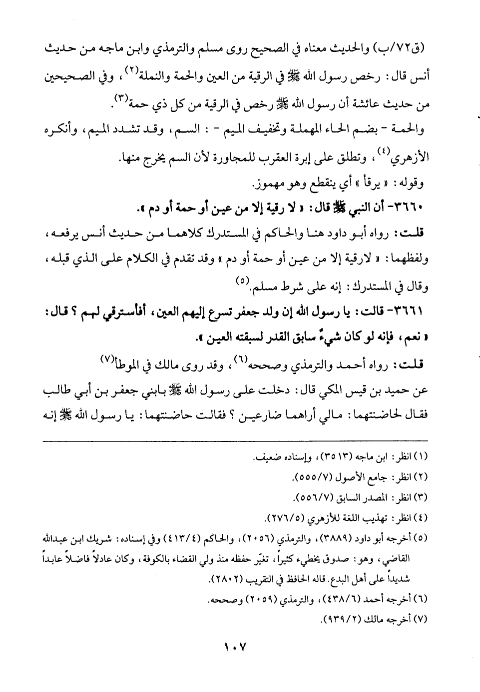3661 - قالت: يا رسول الله إن ولد جعفر تسرع إليهم العين، أفأسترقي لهم؟ قال: "نعم، فإنه لو كان شيءٌ سابق القدر لسبقته العين".