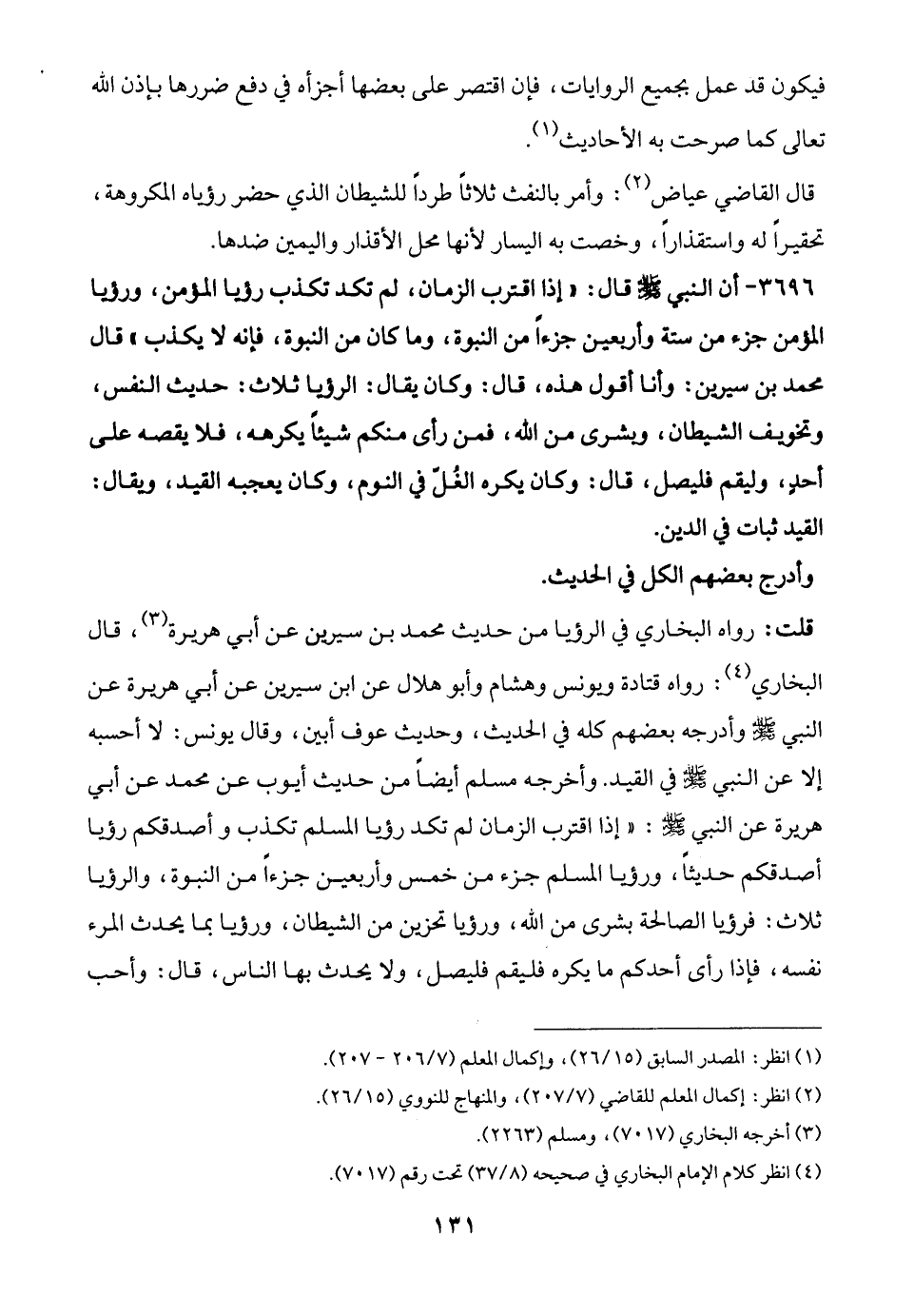 (¬4) انظر كلام الإمام البخاري في صحيحه (8/ 37) تحت رقم (7017).