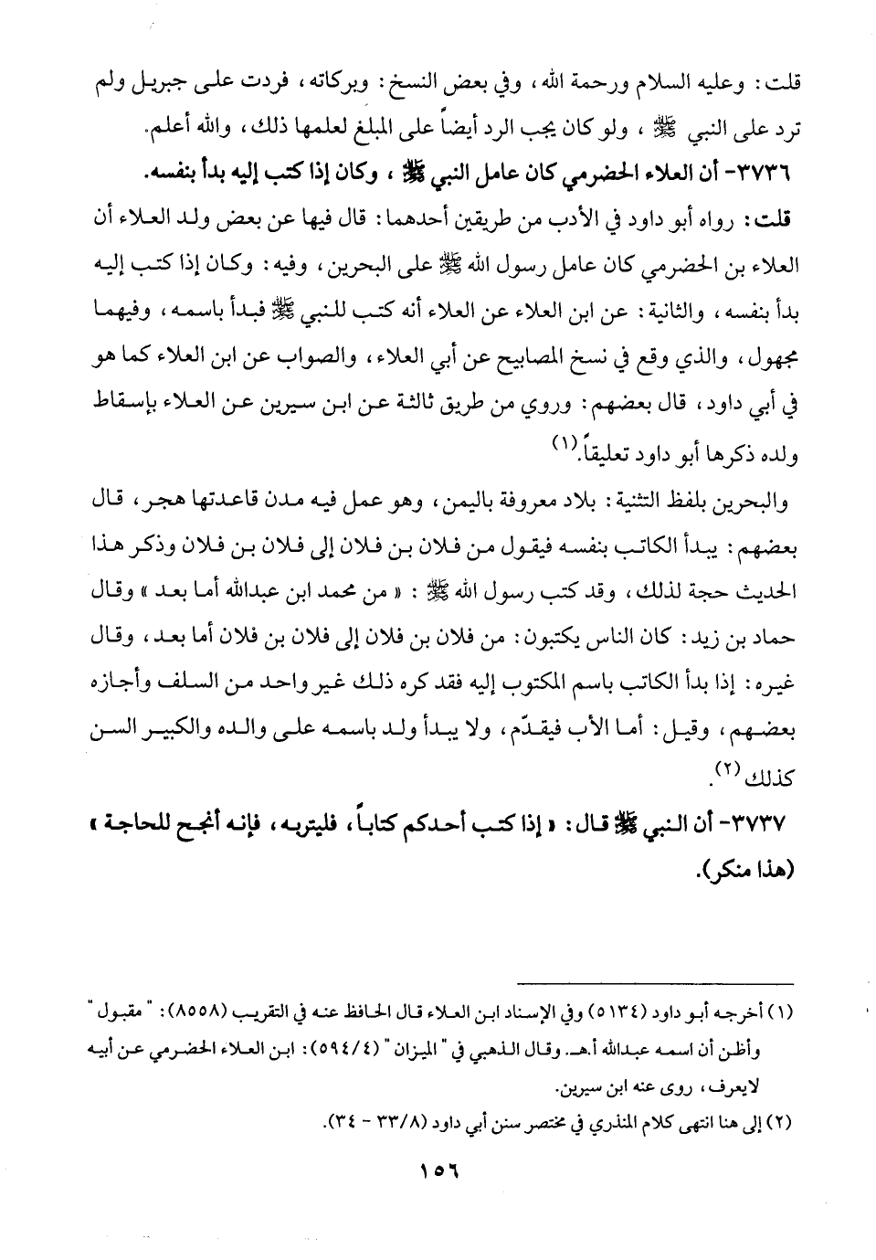 3736 - أن العلاء الحضرمي كان عامل النبي -صلى الله عليه وسلم-، وكان إذا كتب إليه بدأ بنفسه.