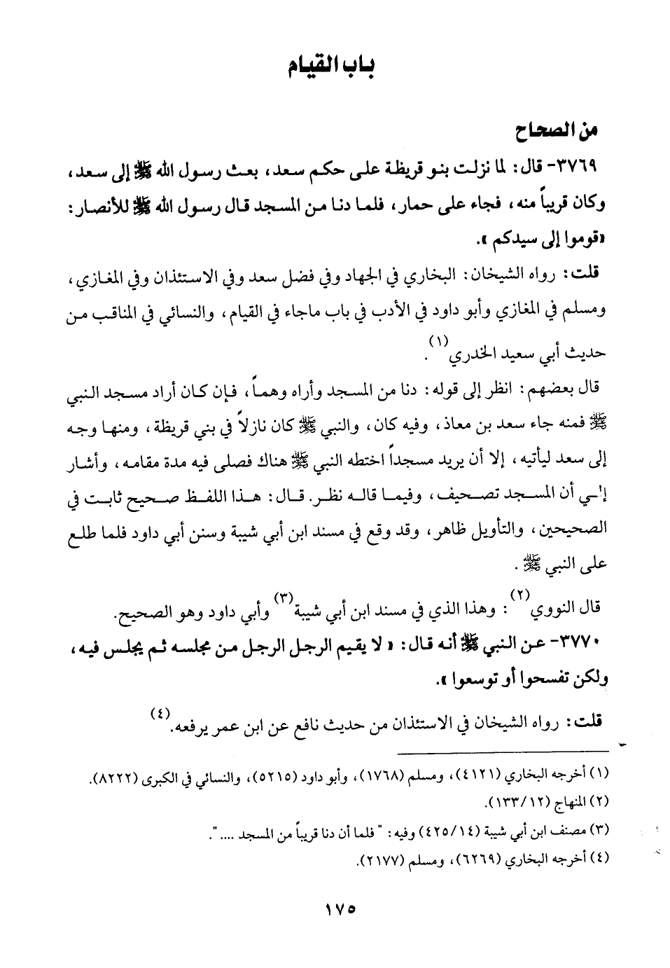 قلت: رواه الشيخان: البخاري في الجهاد وفي فضل سعد وفي الاستئذان وفي المغازي، ومسلم في المغازي وأبو داود في الأدب في باب ما جاء في القيام، والنسائيُّ في المناقب من حديث أبي سعيد الخدري (¬1).