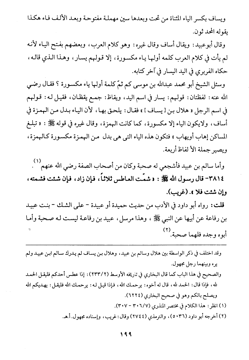 = وقد اختلف في ذكر الواسطة بين هلال وسالم بن عبيد، وهلال بن يساف لم يدرك سالم ابن عبيد ولم يره وبينهما رجل مجهول.