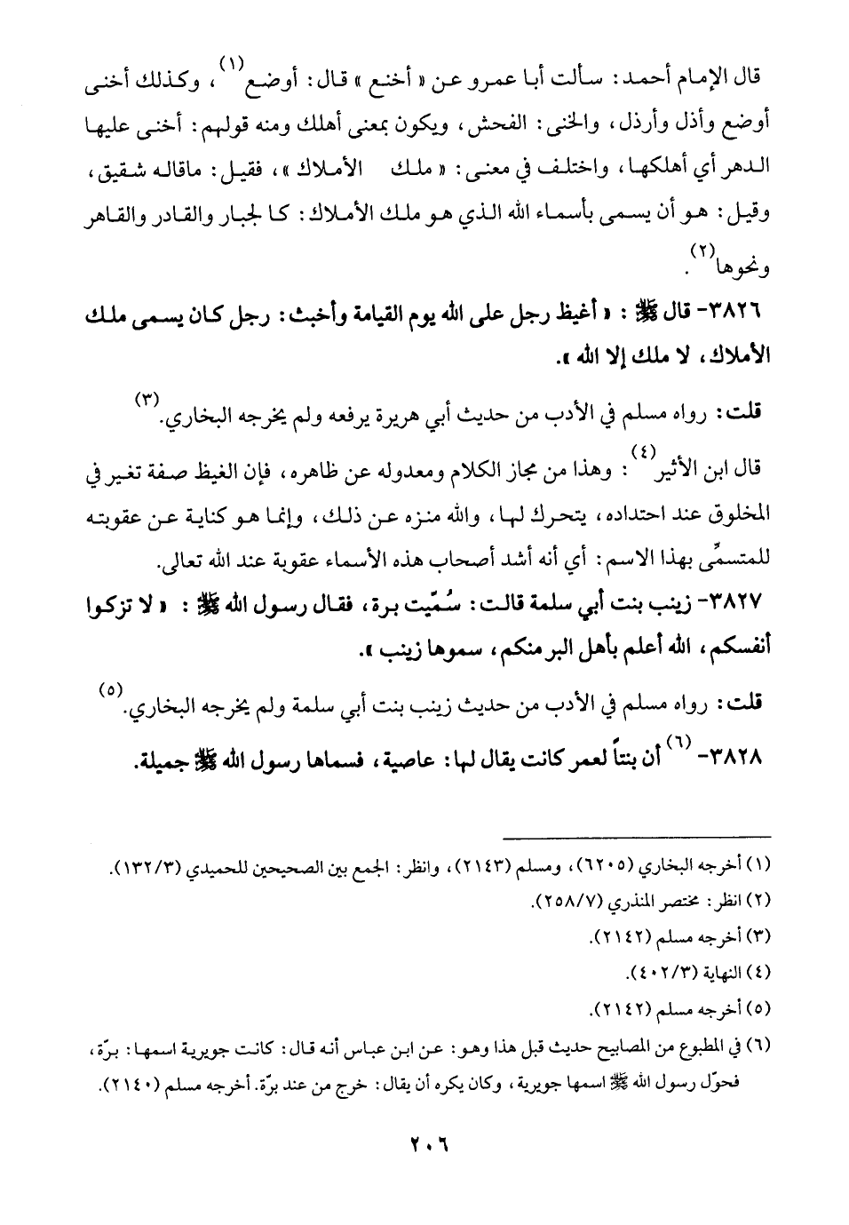 3828 - (¬6) أن بنتًا لعمر كانت يقال لها: عاصية، فسماها رسول الله -صلى الله عليه وسلم- جميلة.