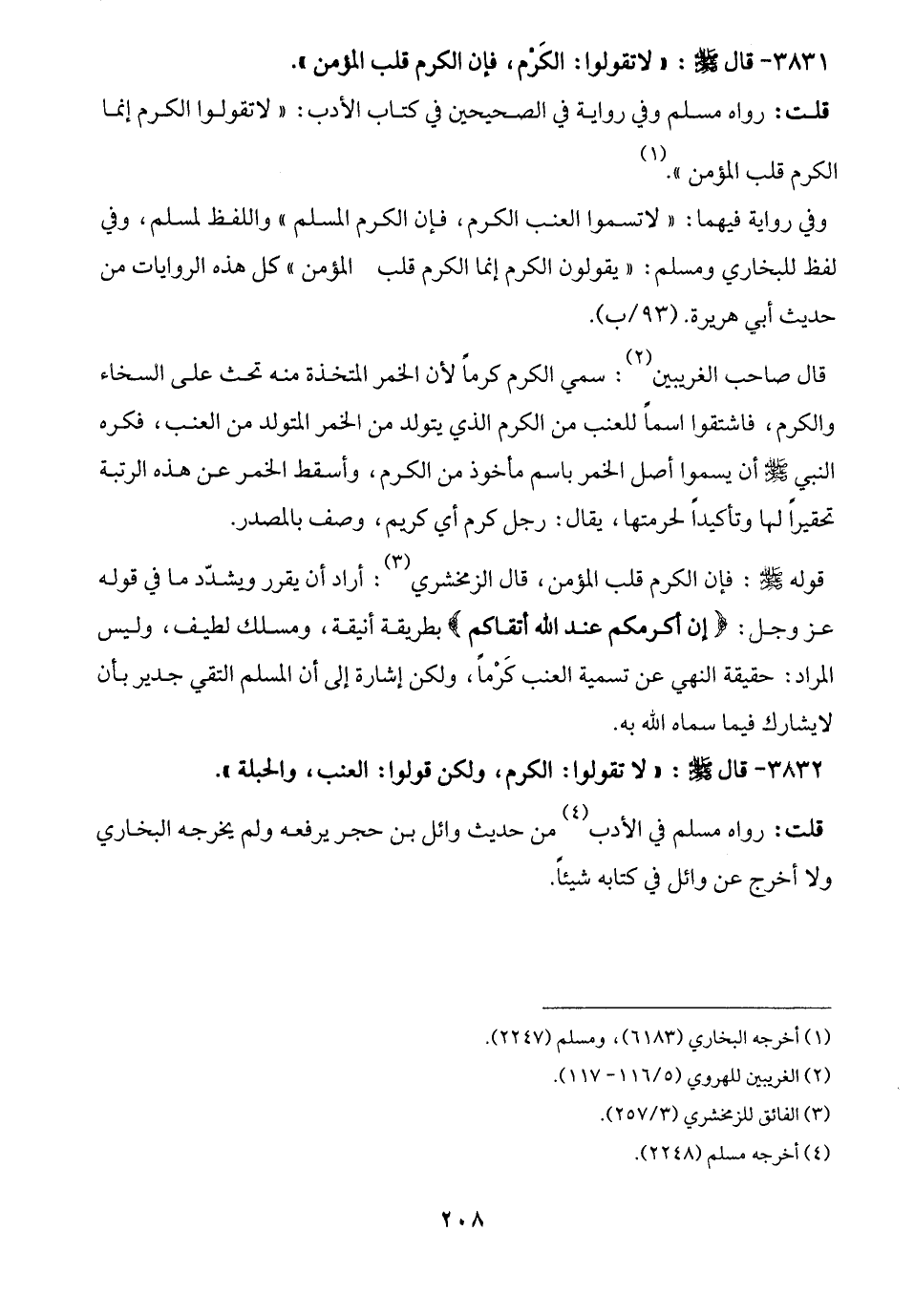 3831 - قال - صلى الله عليه وسلم -: "لا تقولوا: الكَرْم، فإن الكرم قلب المؤمن".