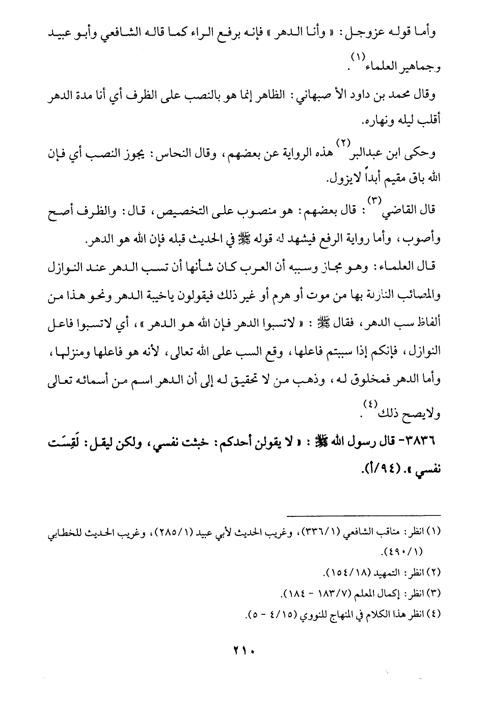 وأما قوله عَزَّ وَجَلَّ: "وأنا الدهر" فإنَّه برفع الراء كما قاله الشافعي وأبو عبيد وجماهير العلماء (¬1).