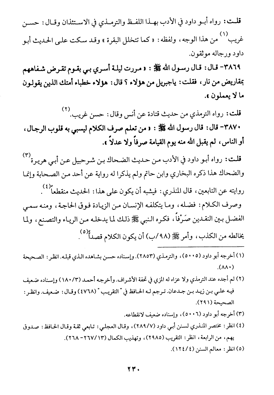 3870 - قال: قال رسول الله -صلى الله عليه وسلم-: "من تعلم صرف الكلام ليسبي به قلوب الرجال، أو الناس، لم يقبل الله منه يوم القيامة صرفًا ولا عدلًا".