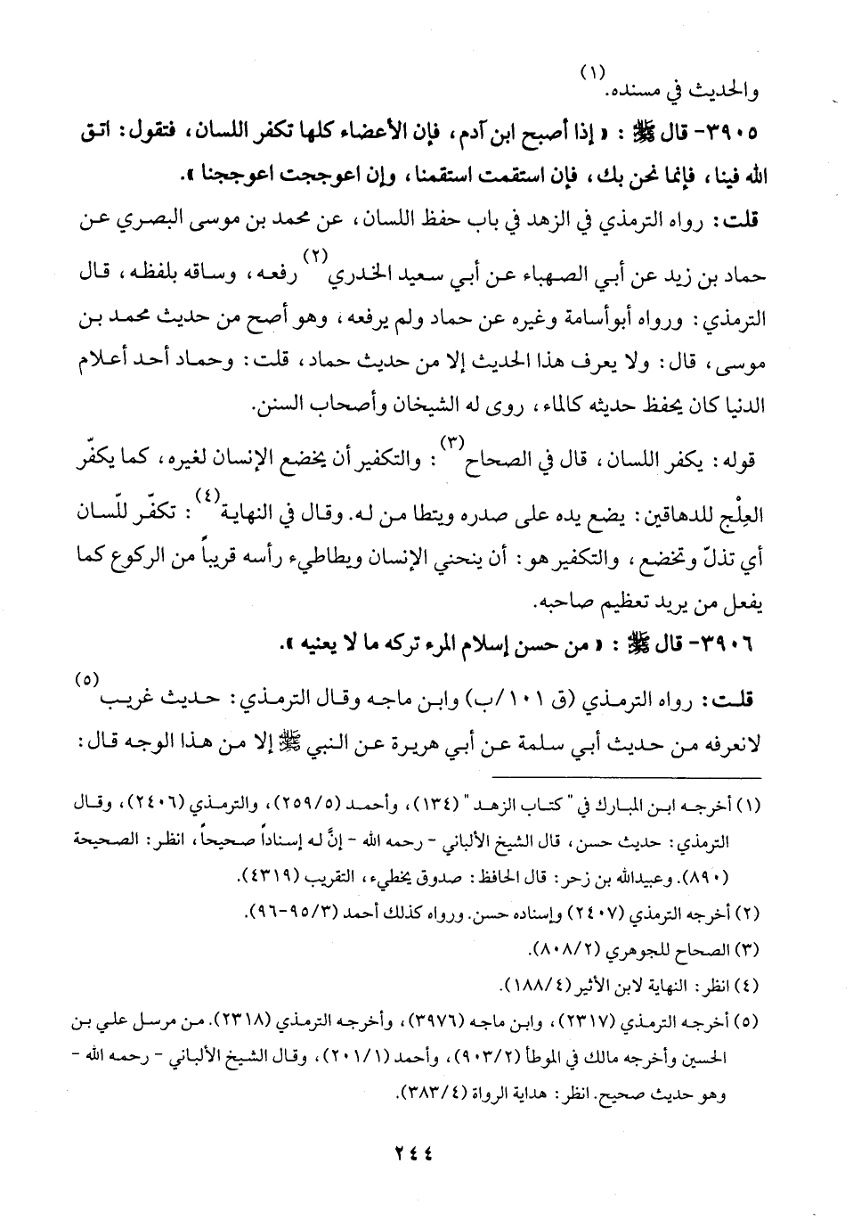 (¬5) أخرجه الترمذي (2317)، وابن ماجه (3976)، وأخرجه الترمذي (2318). من مرسل علي بن الحسين وأخرجه مالك في الموطأ (2/ 903)، وأحمد (1/ 201)، وقال الشيخ الألباني -رحمه الله- وهو حديث صحيح. انظر: هداية الرواة (4/ 383).