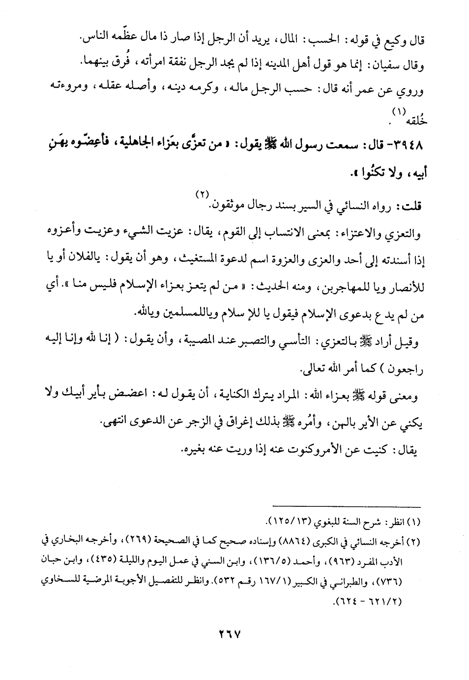 3948 - قال: سمعت رسول الله -صلى الله عليه وسلم- يقول: "من تعزَّى بعَزاء الجاهلية، فأعِضّوه يهَنِ أبيه، ولا تكنُوا".
