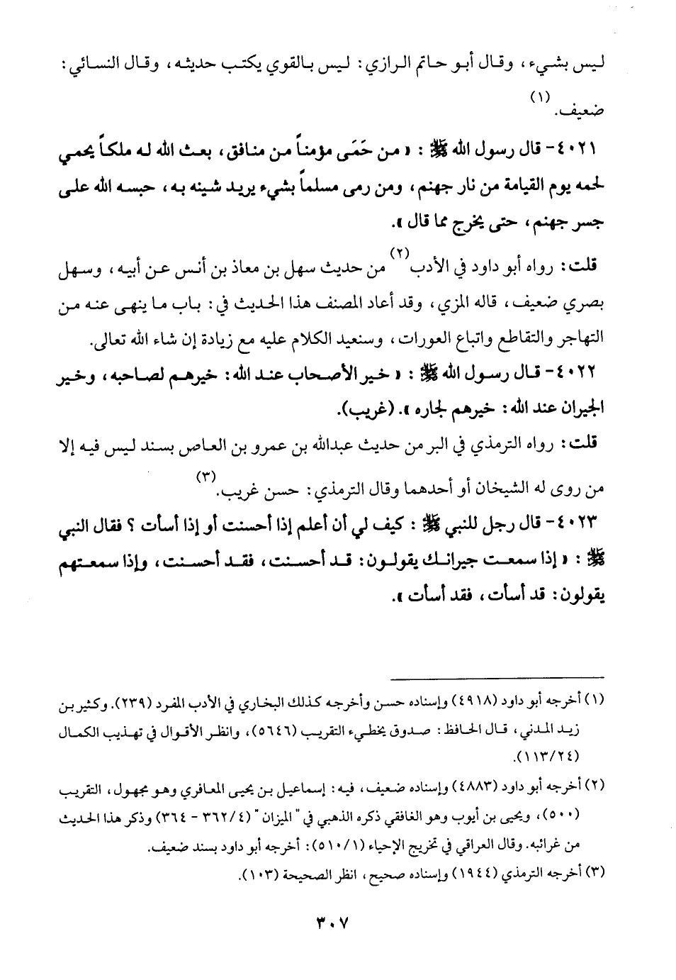 (¬1) أخرجه أبو داود (4918) وإسناده حسن وأخرجه كذلك البخاري في الأدب المفرد (239). وكثير بن زيد المدني، قال الحافظ: صدوق يخطيء التقريب (5646)، وانظر الأقوال في تهذيب الكمال (24/ 113).