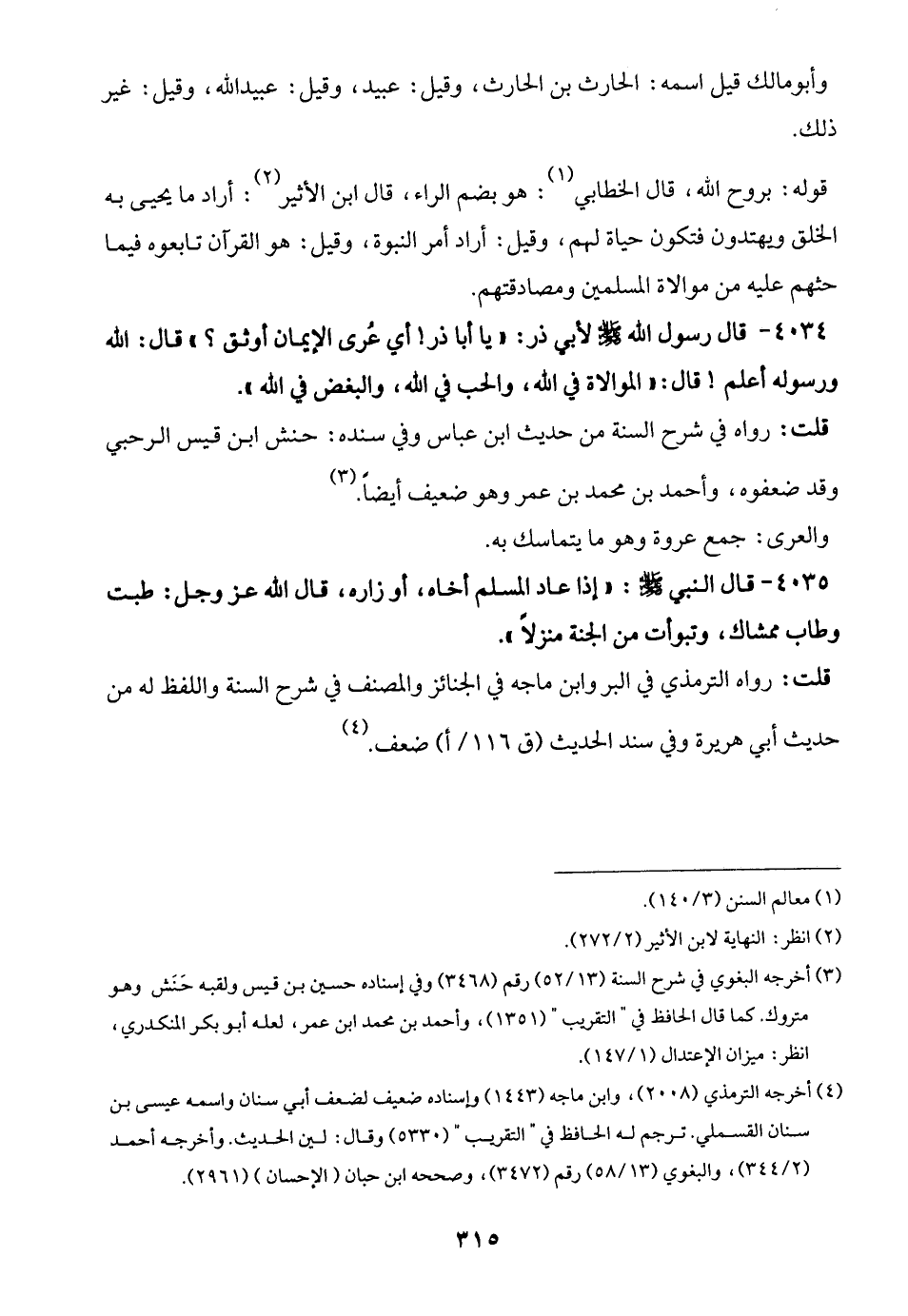 (¬3) أخرجه البغوي في شرح السنة (13/ 52) رقم (3468) وفي إسناده حسين بن قيس ولقبه حَنَش وهو متروك. كما قال الحافظ في "التقريب" (1351)، وأحمد بن محمَّد ابن عمر، لعله أبو بكر المنكدري، انظر: ميزان الاعتدال (1/ 147).