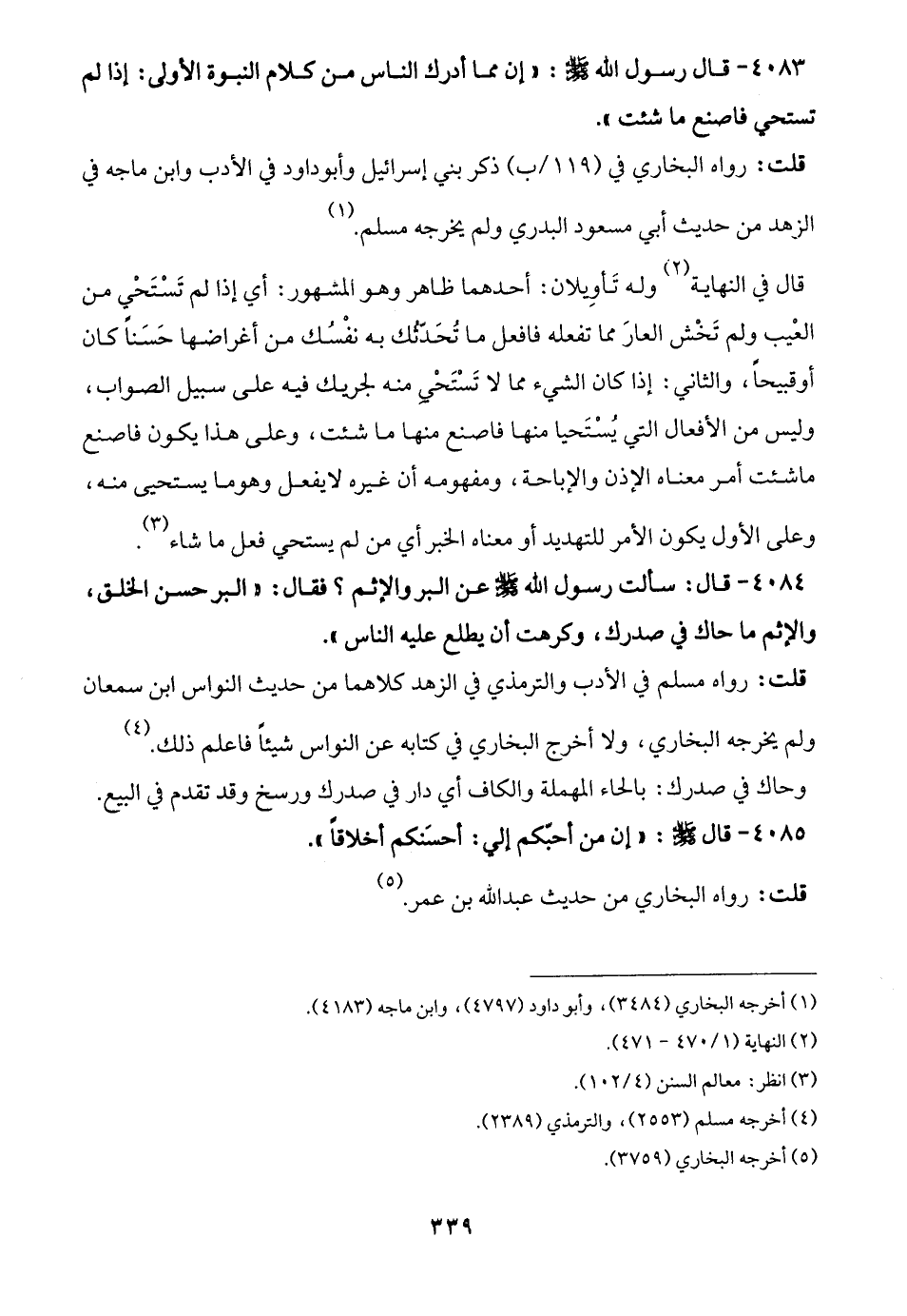 4084 - قال: سألت رسول الله - صلى الله عليه وسلم - حسن البر والإثم؟ فقال: "البر حسن الخلق، والإثم ما حاك في صدرك، وكرهت أن يطلع عليه الناس".
